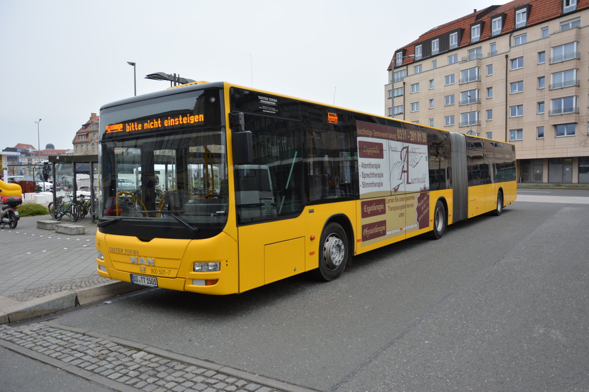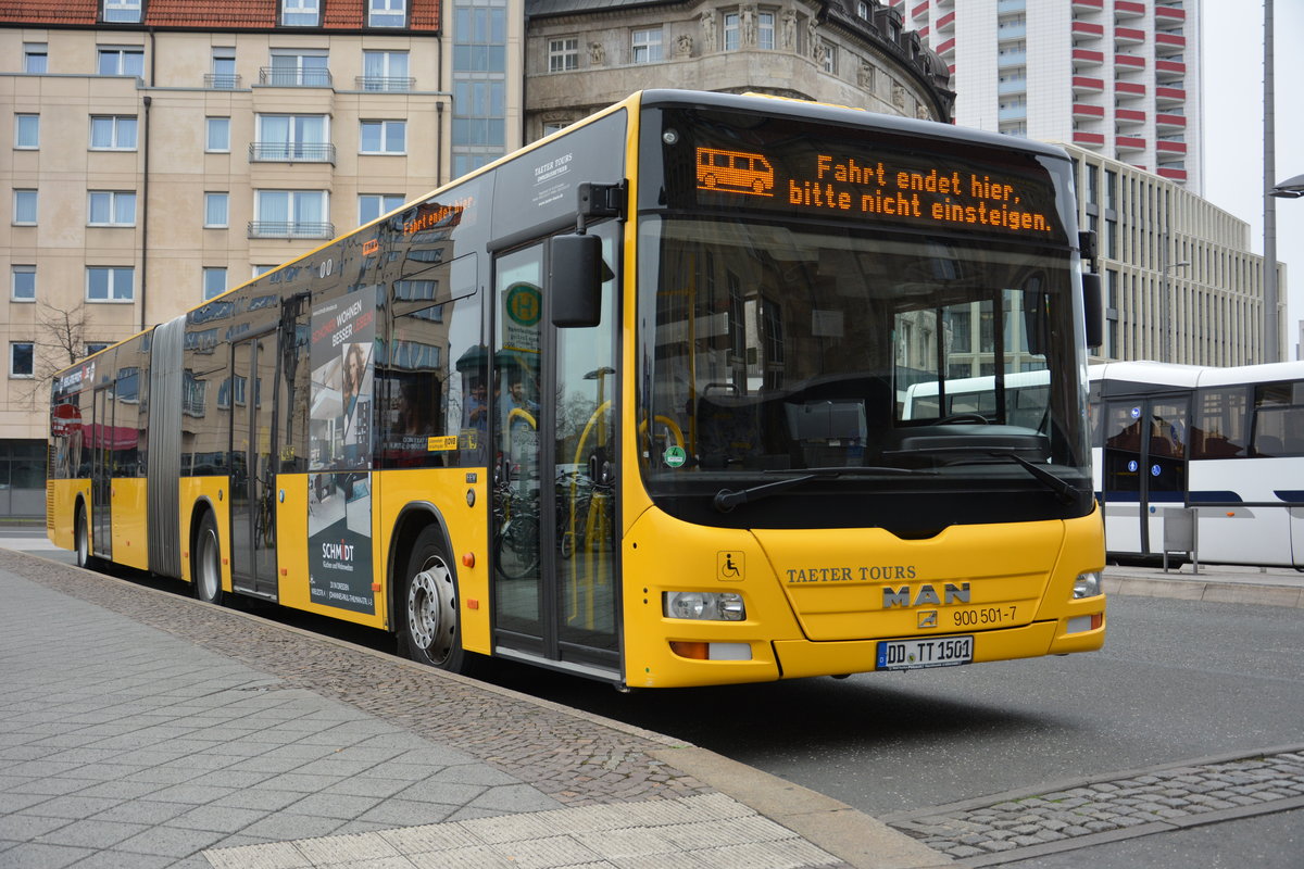 Am 15.04.2016 steht DD-TT 1501 (900 501-7) am Busbahnhof in Leipzig. Aufgenommen wurde ein MAN Lion's City G.