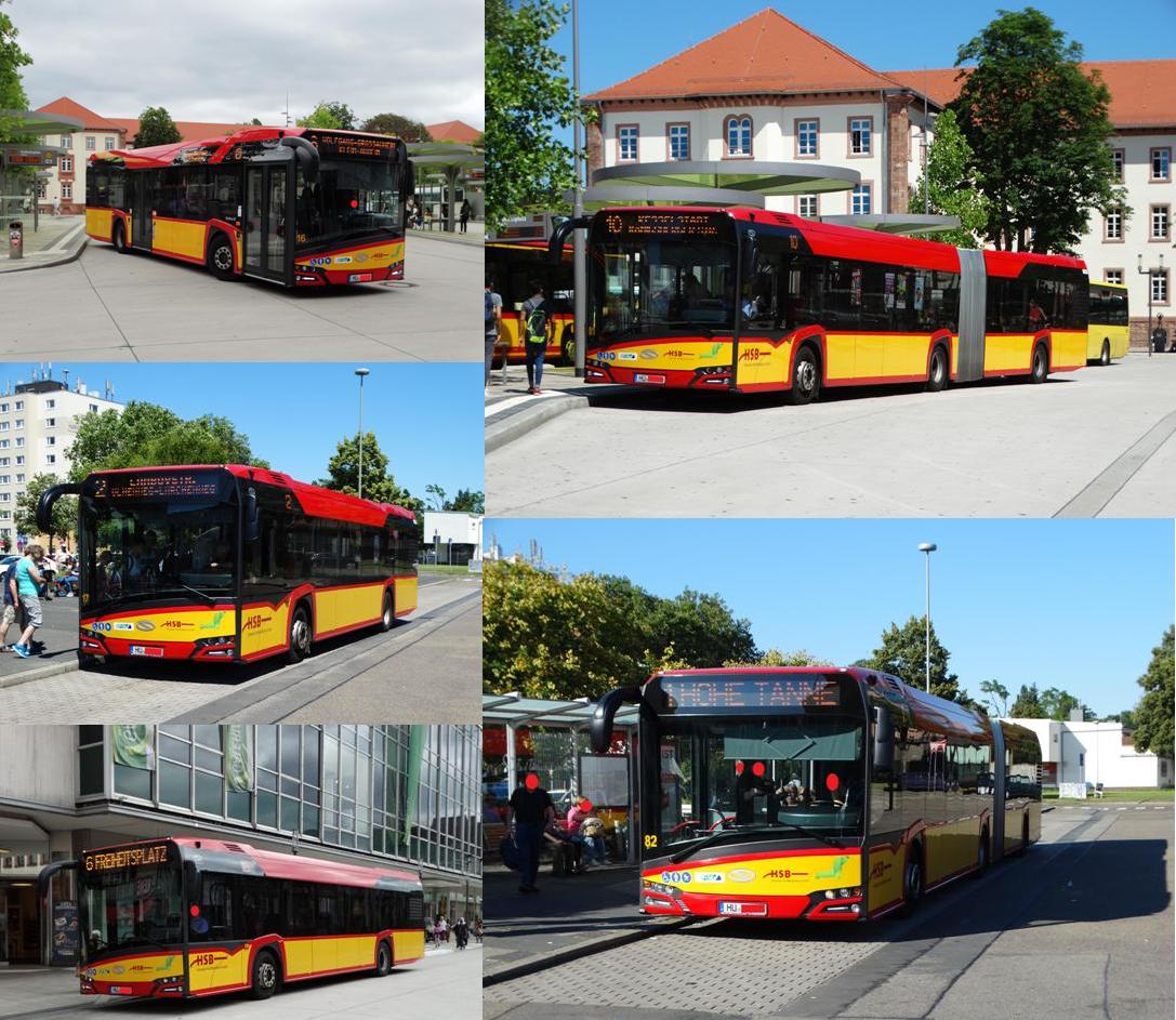 Auf dieser Collage kann man alle neuen Hanauer Straßenbahn Solaris Urbino sehen. Es sind die Wagen 16,17,18 (Solaris Urbino 12) und 81,82 (Solaris Urbino 18). Alle wurden im Jahr 2016 in Hanau fotografiert