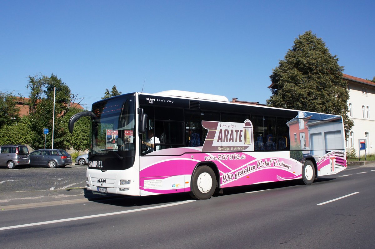 Stadtbus Eisenach: MAN NG der KVG Eisenach, eingesetzt im Stadtverkehr. Aufgenommen im August 2016 im Stadtgebiet von Eisenach.