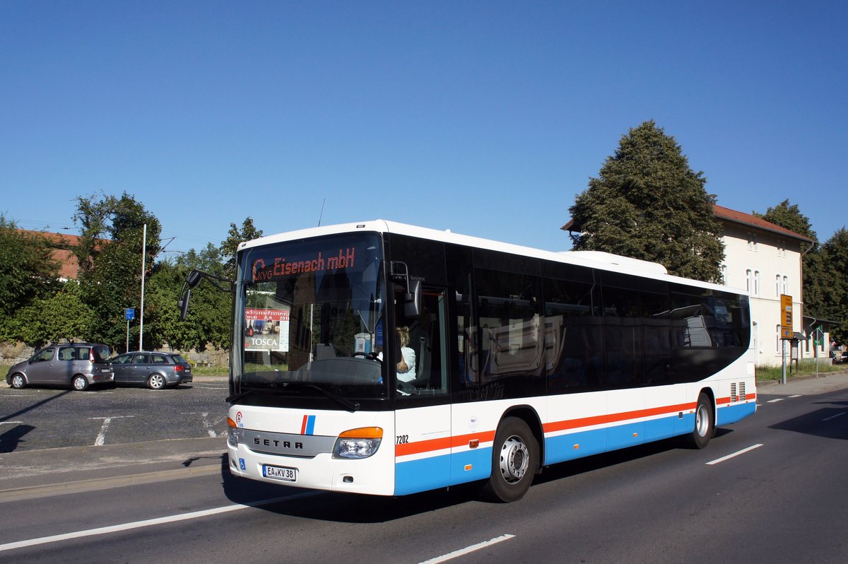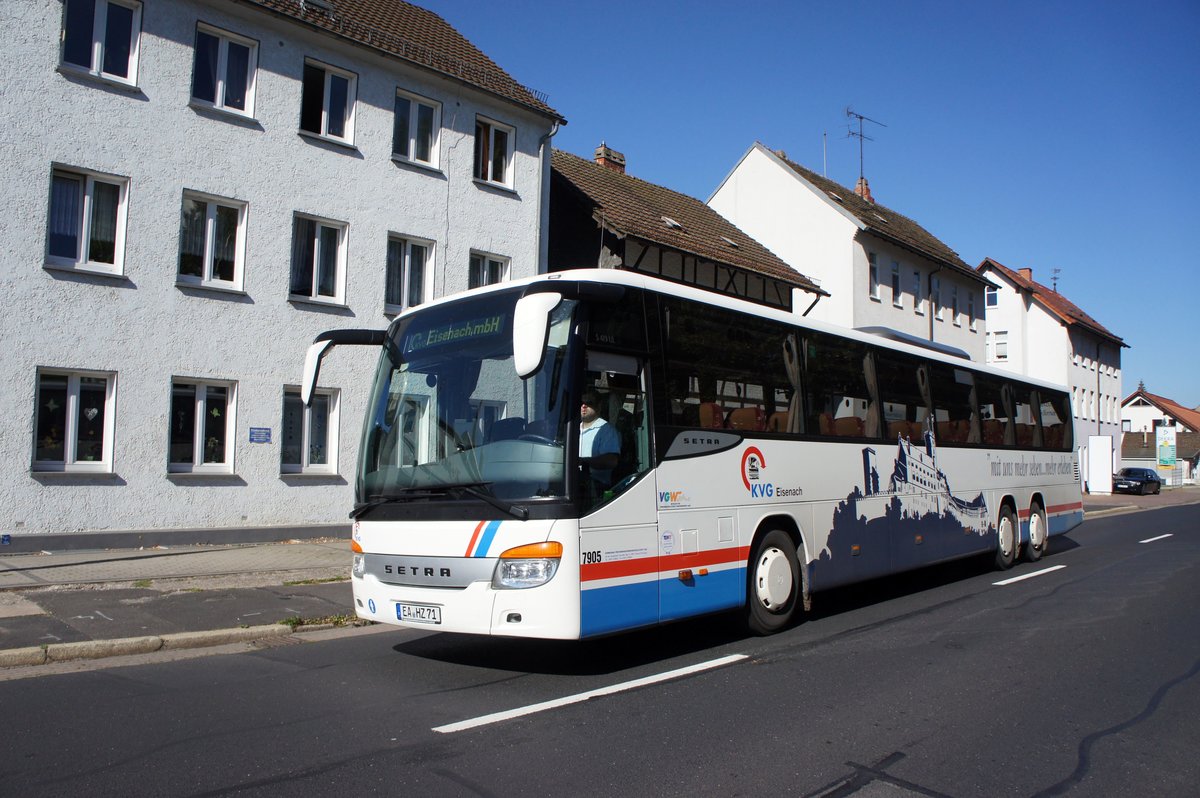 Bus Eisenach / Verkehrsgesellschaft Wartburgkreis mbH (VGW): Setra S 419 UL der KVG Eisenach, eingesetzt im Überlandverkehr. Aufgenommen im August 2016 im Stadtgebiet von Eisenach.