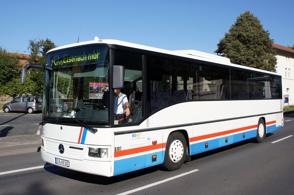 Bus Eisenach / Verkehrsgesellschaft Wartburgkreis mbH (VGW): Mercedes-Benz Integro der KVG Eisenach, eingesetzt im Überlandverkehr. Aufgenommen am Hauptbahnhof von Eisenach im August 2016.