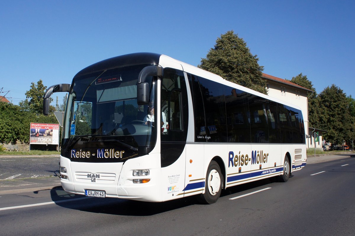 Bus Eisenach / Verkehrsgesellschaft Wartburgkreis mbH (VGW): MAN Lion's Regio der Reise-Möller GmbH, eingesetzt im Überlandverkehr. Aufgenommen am Hauptbahnhof von Eisenach im August 2016.