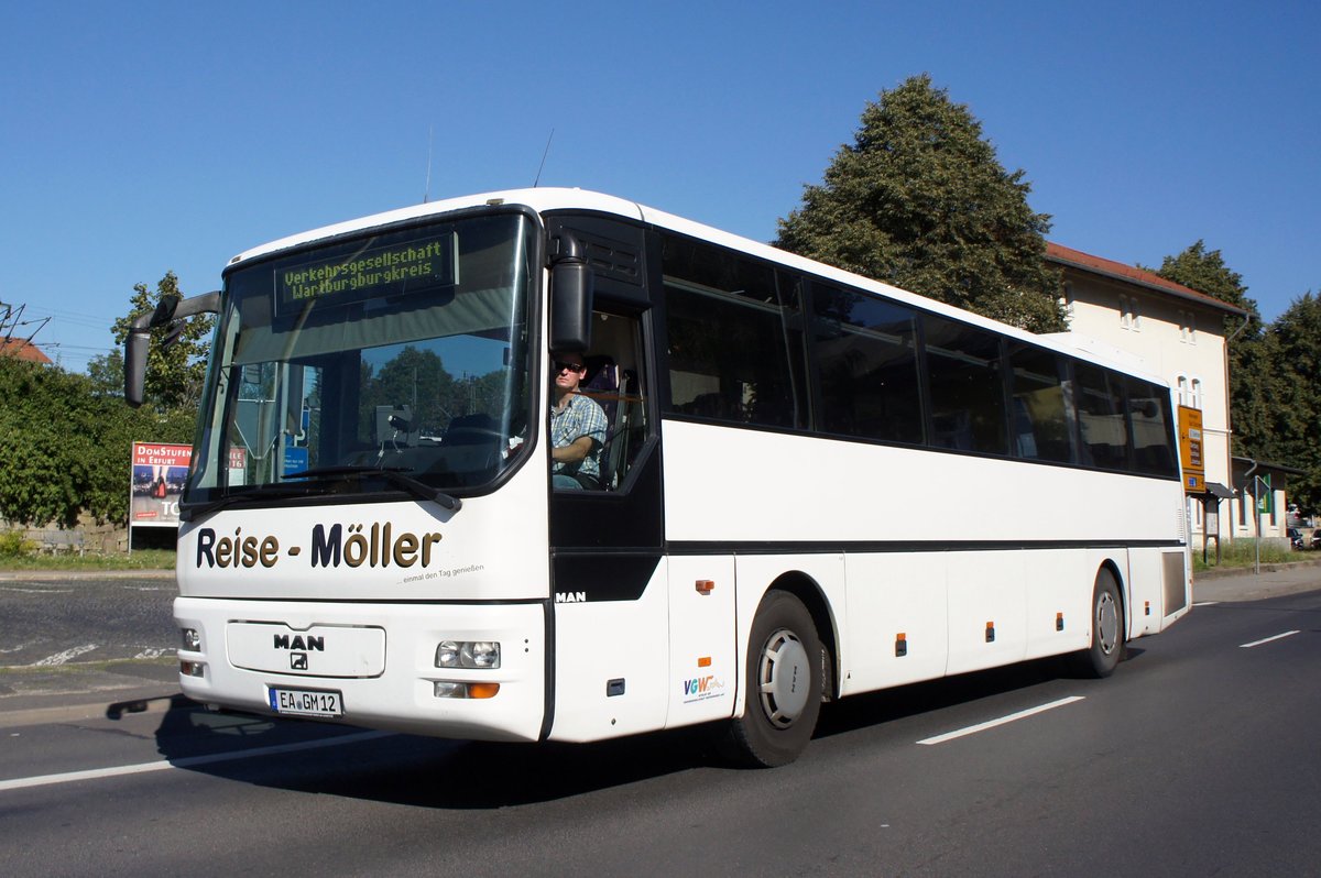 Bus Eisenach / Verkehrsgesellschaft Wartburgkreis mbH (VGW): MAN ÜL der Reise-Möller GmbH, eingesetzt im Überlandverkehr. Aufgenommen am Hauptbahnhof von Eisenach im August 2016.