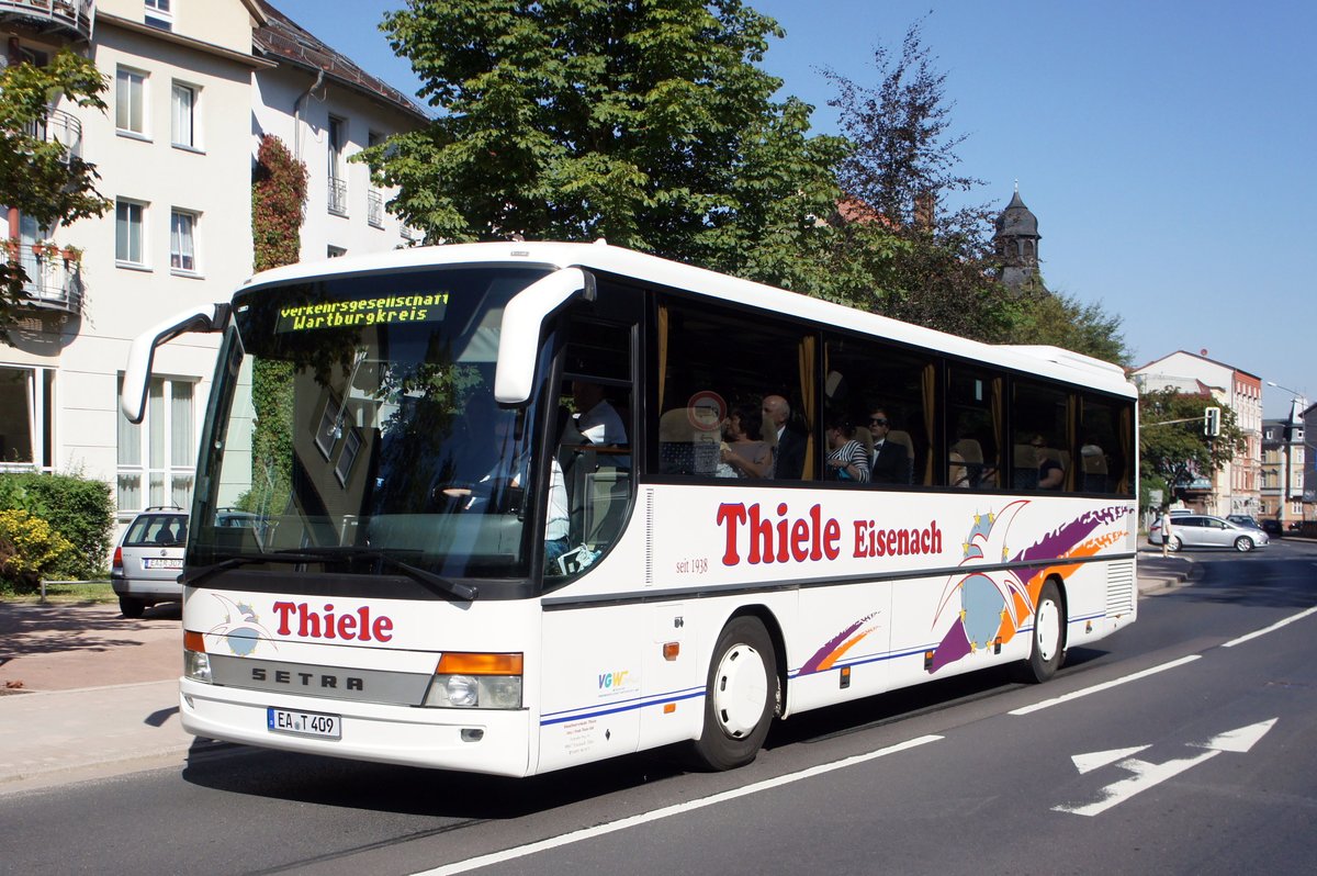 Bus Eisenach / Verkehrsgesellschaft Wartburgkreis mbH (VGW): Setra S 315 GT vom Omnibusverkehr Thiele, eingesetzt im Überlandverkehr. Aufgenommen im August 2016 im Stadtgebiet von Eisenach.