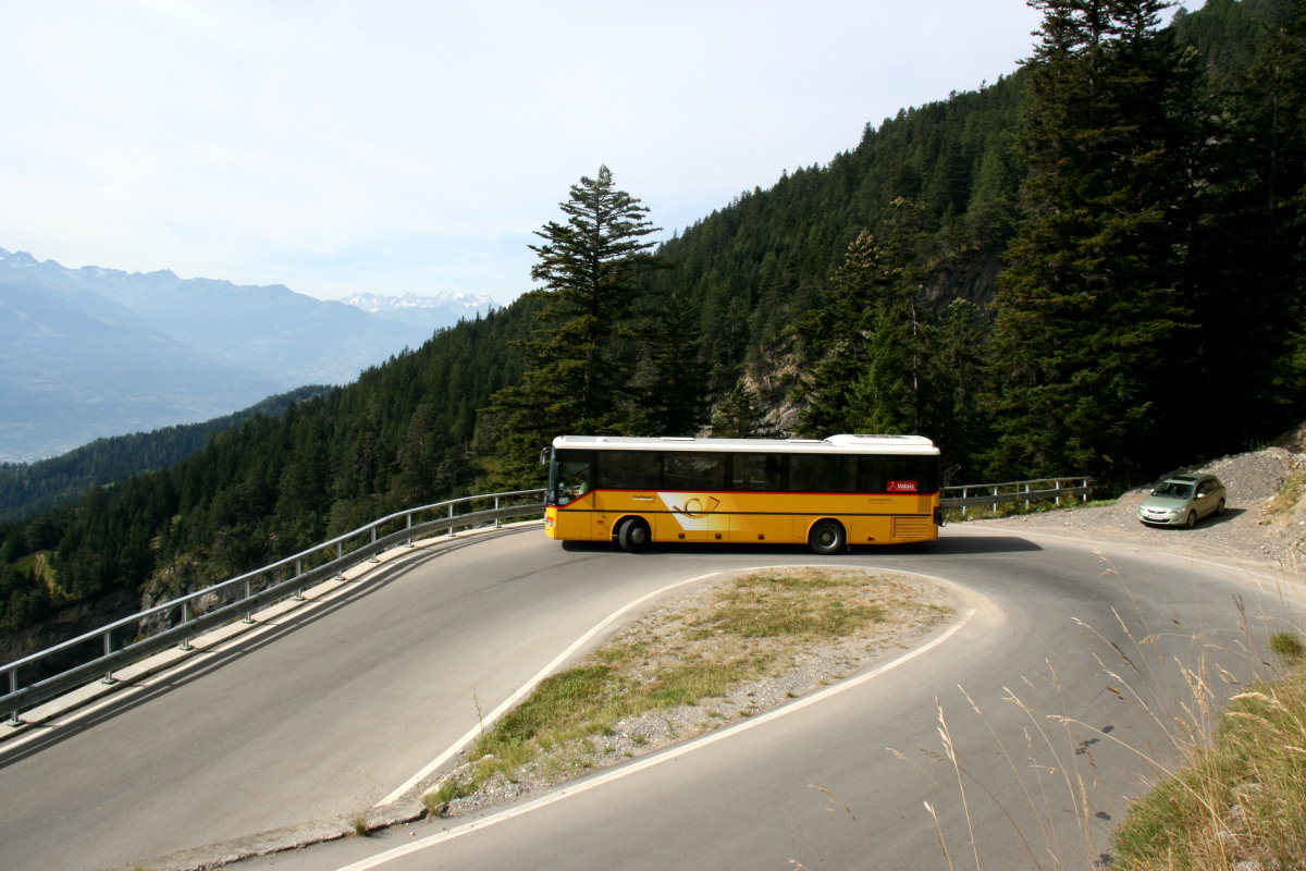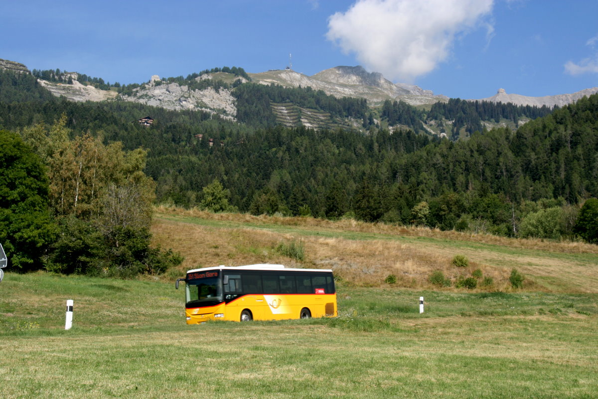 Ein Irisbus Crossway Postauto auf der Linie 12.351 Anzère – Ayent – Sion Gare oberhalb von Botyre; 03.09.2016