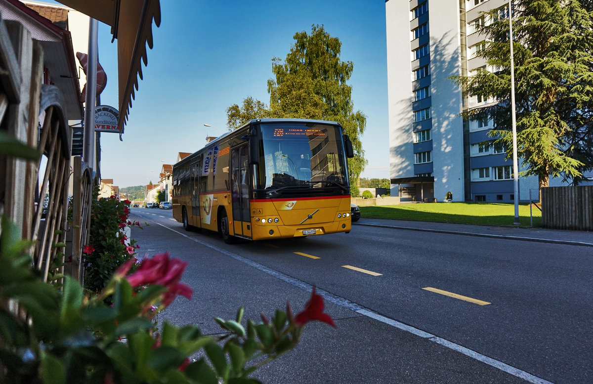 Ein Volvo 8700 von PostAuto, unterwegs auf der Linie 80.728, als Kurs 72832 (Uzwil, Bahnhof - Niederhelfenschwil, Neudorf).
