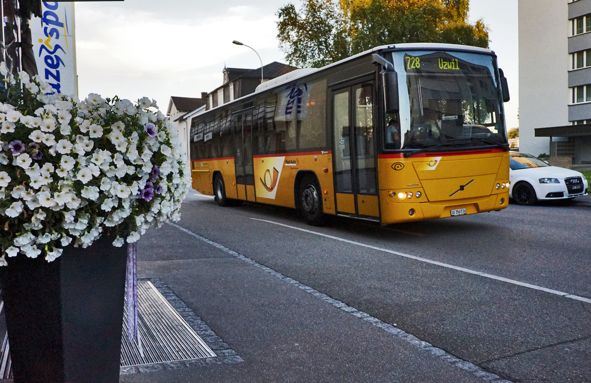 Ein Volvo 8700 LE von PostAuto, unterwegs auf der Linie 80.728, als Kurs 72831 (Niederhelfenschwil, Neudorf - Uzwil, Bahnhof).