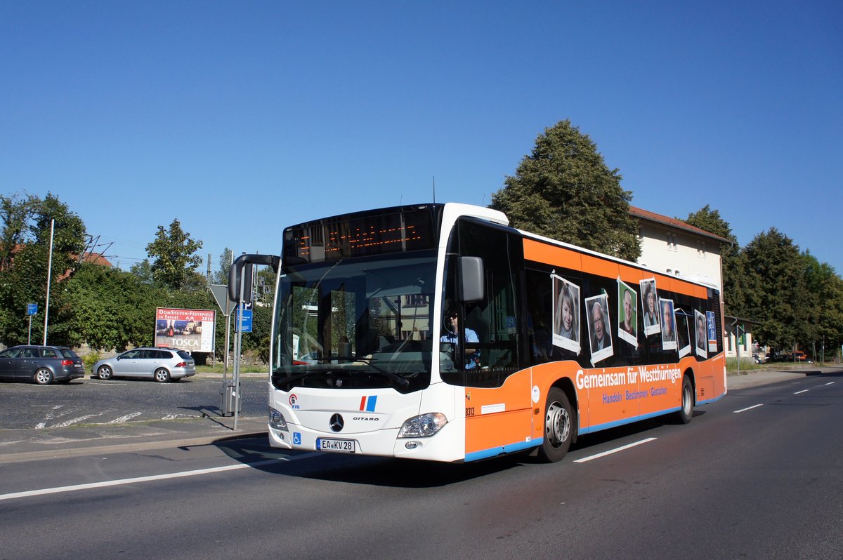 Stadtbus Eisenach: Mercedes-Benz Citaro Facelift der KVG Eisenach, eingesetzt im Stadtverkehr. Aufgenommen im August 2016 im Stadtgebiet von Eisenach.
