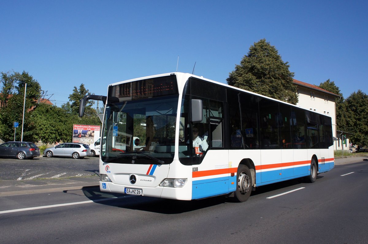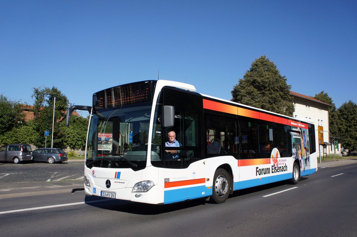 Stadtbus Eisenach: Mercedes-Benz Citaro der KVG Eisenach, eingesetzt im Stadtverkehr. Aufgenommen am Hauptbahnhof von Eisenach im August 2016.
