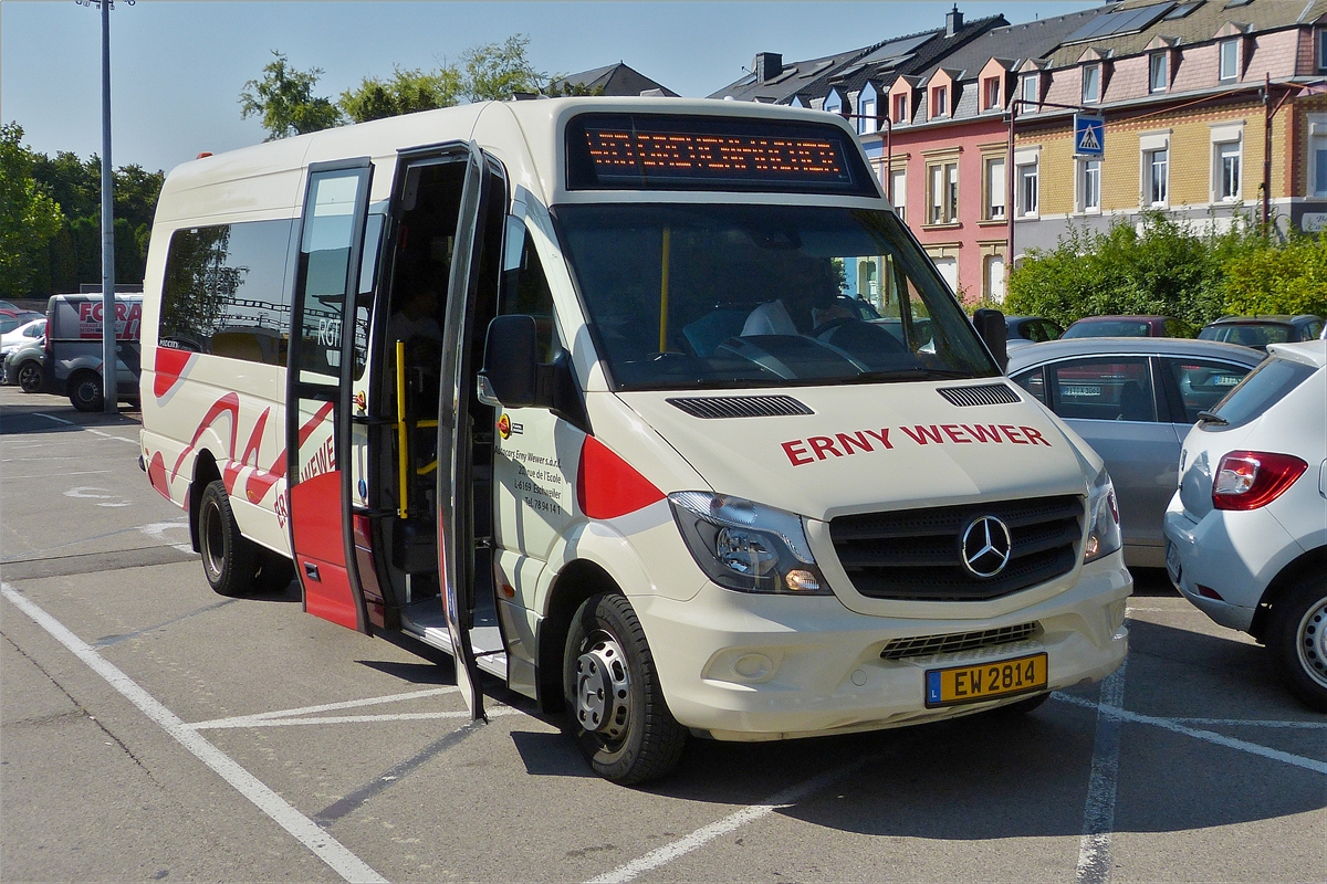 . EW 2814, Mercedes Benz Sprinter von Voyages Erny Wewer ist am 14.09.2016 zwischen Grevenmacher und Wasserbillig als Linienbus im Einsatz.