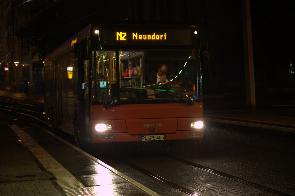 Nachtbus N1 N4 an der Haltestelle Tunnel in Plauen. 17.09.2016 22:43 Uhr.