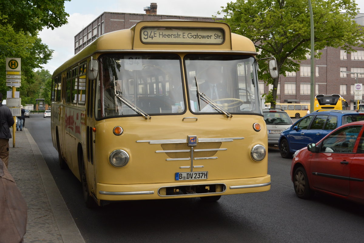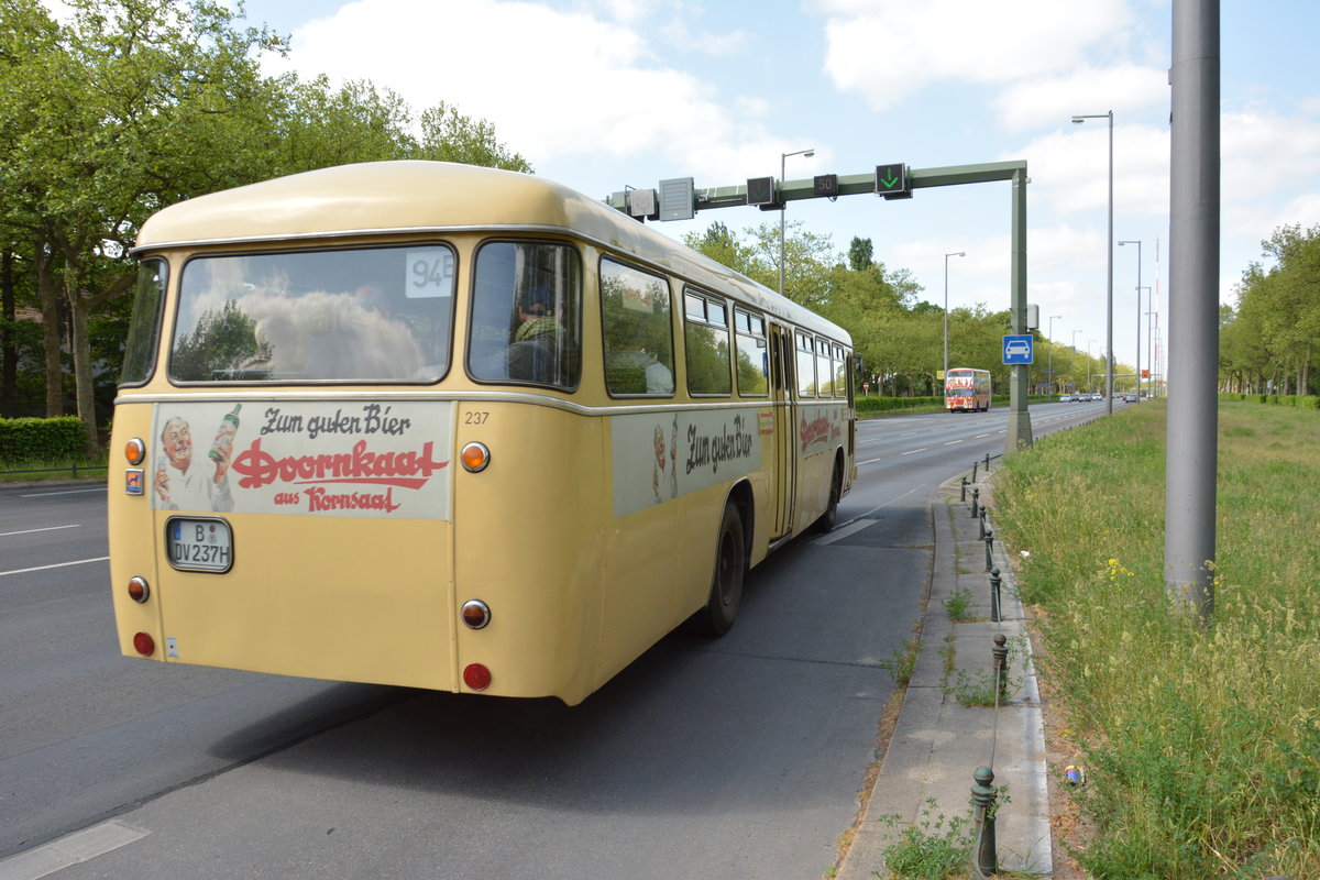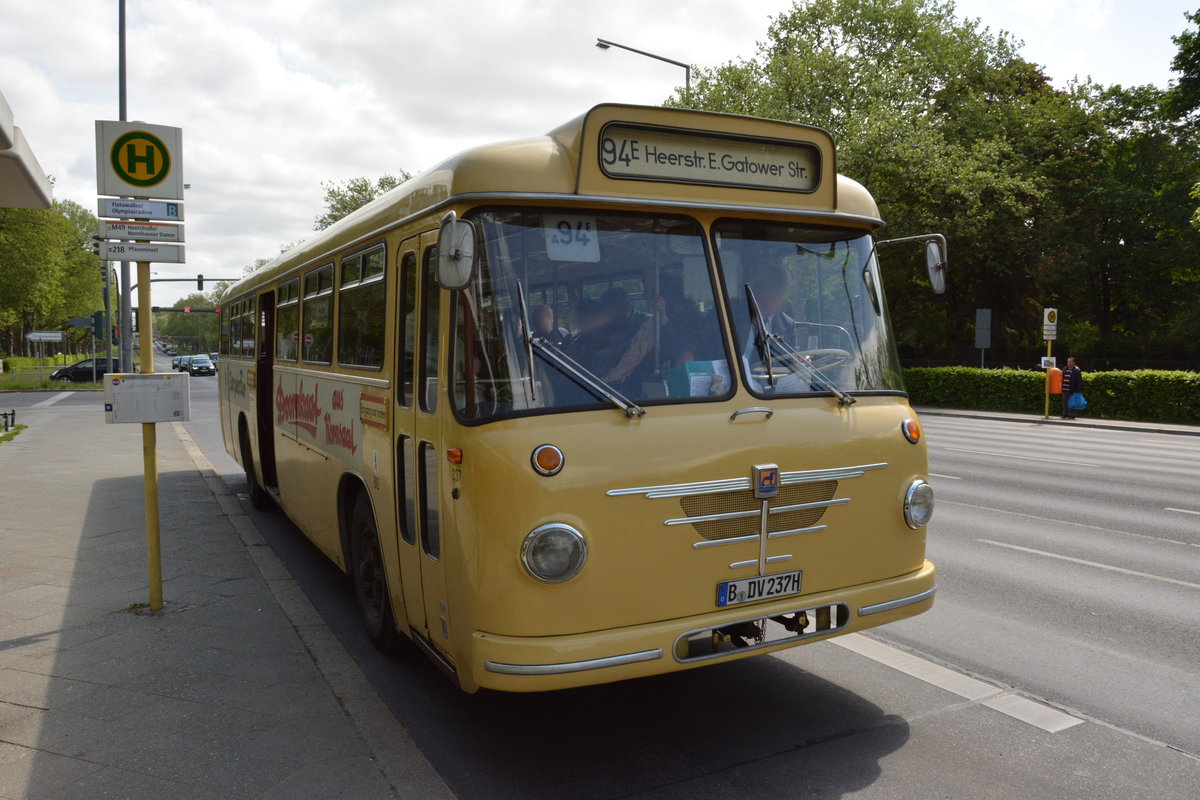 "50 Jahre Busse auf der Kantstraße", so hieß es zur Traditionsfahrt 2016. Auch mit dabei B-DV 237H , Büssing E2U 62S. Aufgenommen an der Haltestelle, Flatowallee/Olympiastadion.