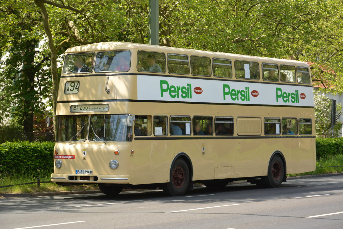 "50 Jahre Busse auf der Kantstraße", so hieß es zur Traditionsfahrt 2016. Auch mit dabei B-Z 1794H, Büssing DE 65. Aufgenommen an der Haltestelle, Flatowallee/Olympiastadion.