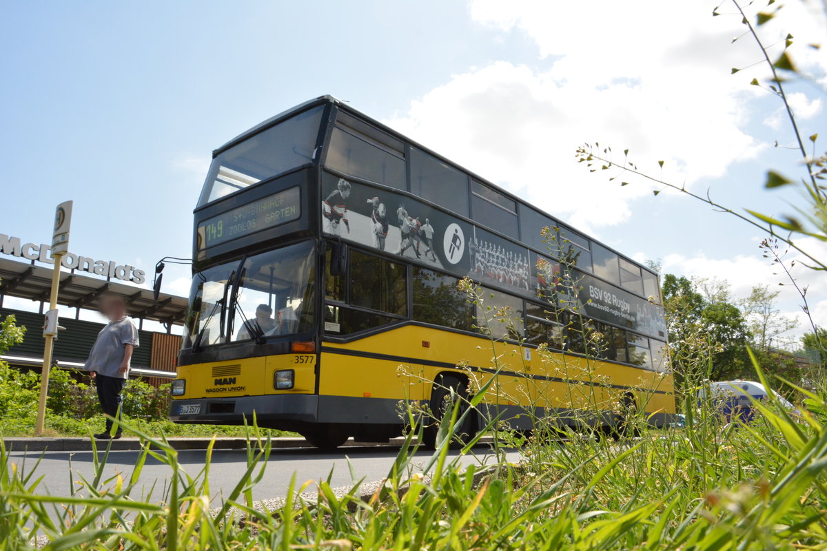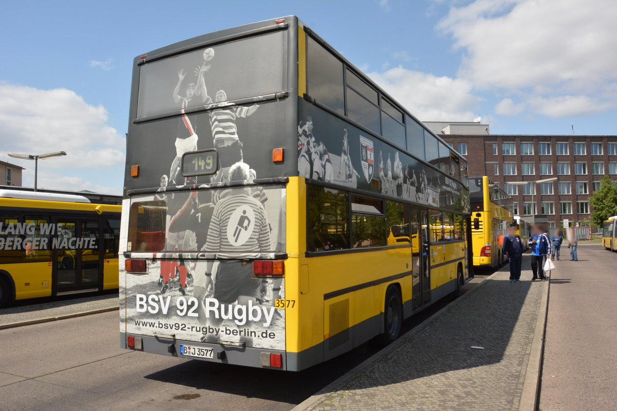 "50 Jahre Busse auf der Kantstraße", so hieß es zur Traditionsfahrt 2016. Auch mit dabei B-J 3577, MAN D 87 (SD 202). Aufgenommen an der Haltestelle, Heerstraße/Nennhauser Damm.