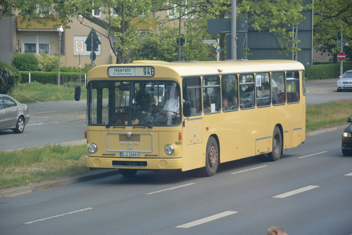 "50 Jahre Busse auf der Kantstraße", so hieß es zur Traditionsfahrt 2016. Auch mit dabei B-I 1666H, MAN SL 200 (E2H 85). Aufgenommen an der Heerstraße.
