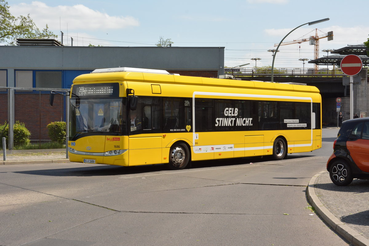 Am 14.05.2016 fährt B-V 1686 auf der Linie 204. Aufgenommen wurde ein Solaris Urbino 12 Electric / Berlin Hertzallee.