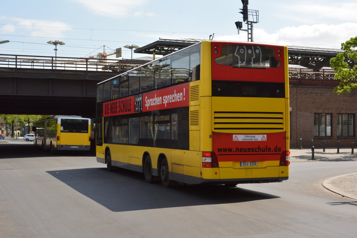 Am 14.05.2016 fährt B-V 3156 auf der Linie X10. Aufgenommen wurde ein MAN Lion's City DD / Berlin Zoologischer Garten.