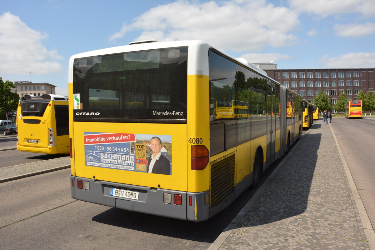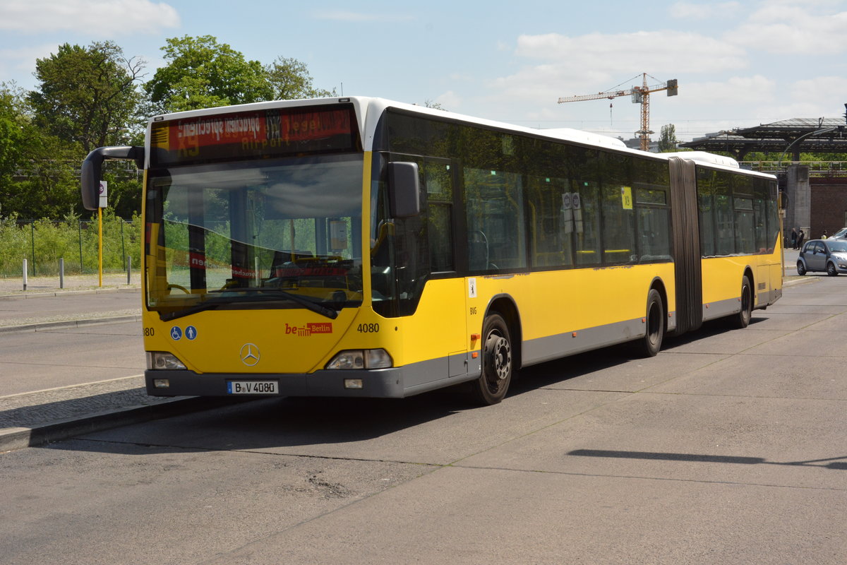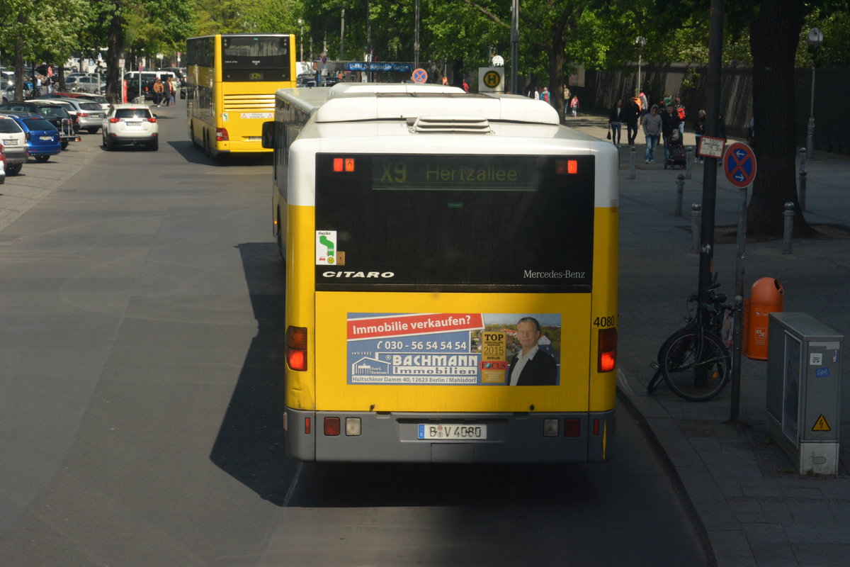 Am 14.05.2016 fährt B-V 4080 auf der Linie X9. Aufgenommen wurde ein Mercedes Benz Citaro G / Berlin Hertzallee.
