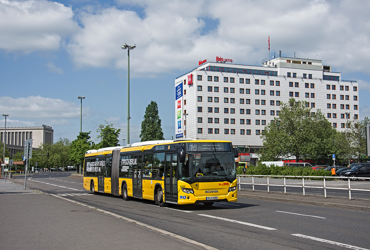 Berlin BVG Scania Citywide Wagen 4450 als Linie M49, Messe Nord ICC, 13.05.2016.