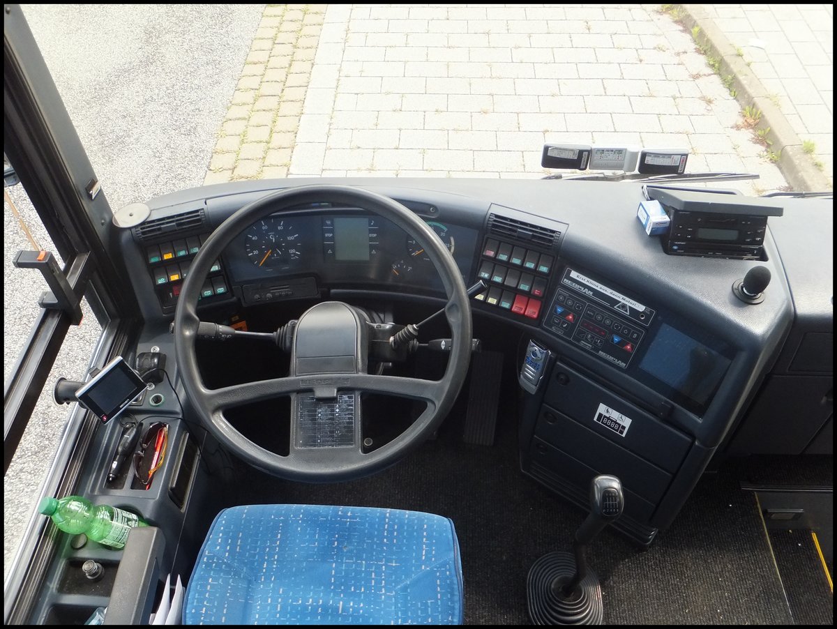 Der Fahrerarbeitsplatz vom Neoplan Cityliner von Lewitz Reisen aus Deutschland in Rostock am 02.07.2014