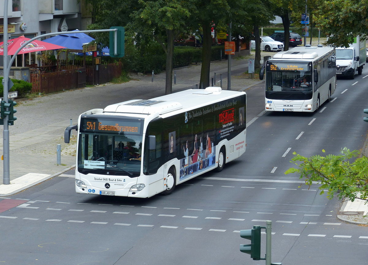 Im SEV -Ersatzverkehr S41 /S42 (Ring) MB Citaro C2, BAR-KB 138 (Willi Brust & Sohn) und MAN B-BN 701. Berlin im Aug. 2016.