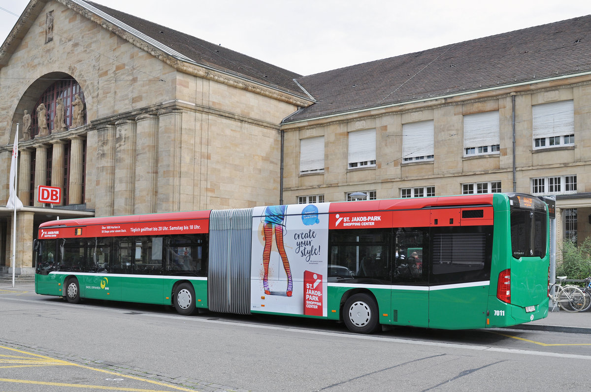 Mercedes Citaro 7011, auf der Linie 30, wartet an der Endstation am Badischen Bahnhof. Die Aufnahme stammt vom 03.09.2016.