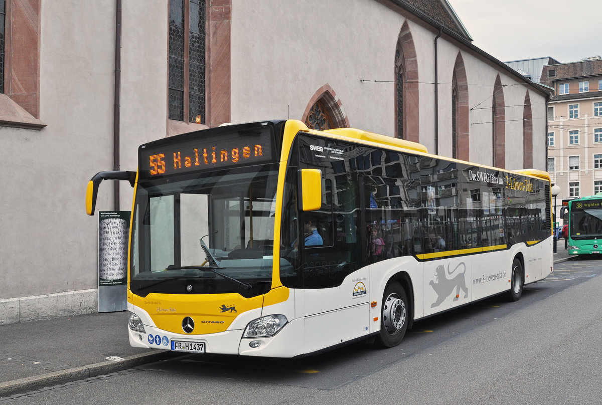Mercedes Citaro von SWEG, auf der Linie 55, wartet an der Endstation am Claraplatz. Die Aufnahme stammt vom 17.09.2016.