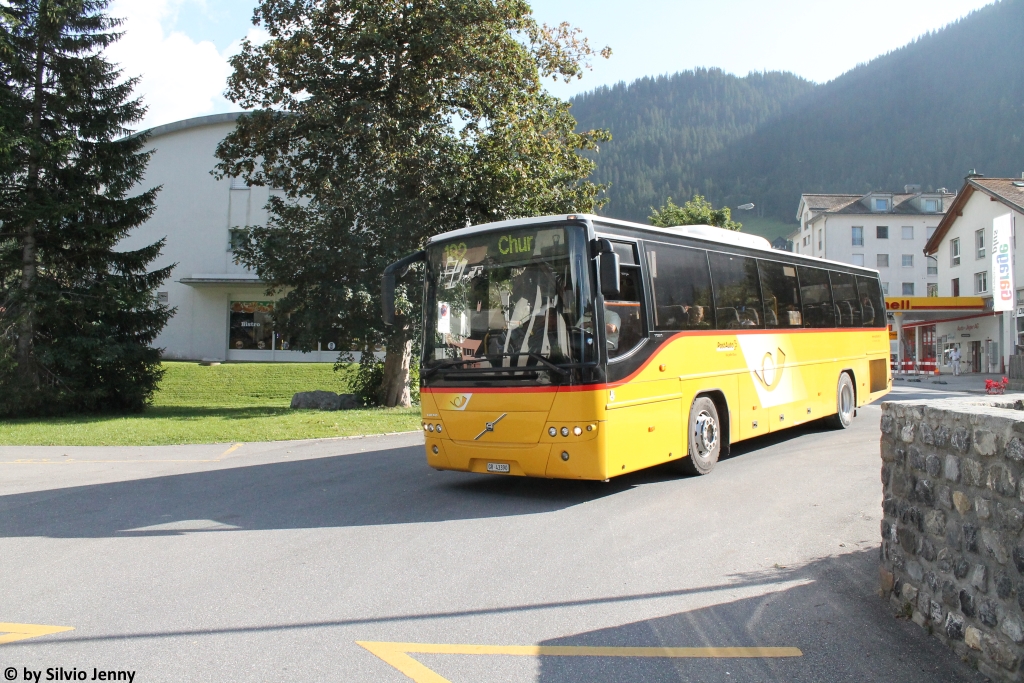 Postauto/PU Reptrans ex. Regie Thusis GR 43390 (Volvo 8700) am 13.9.2016 in Churwalden, Post. Der Wagen kam im Jahre 2010 zum damaligen PU Demarmels, weil ein Mercedes Integro vollständig ausbrannte.