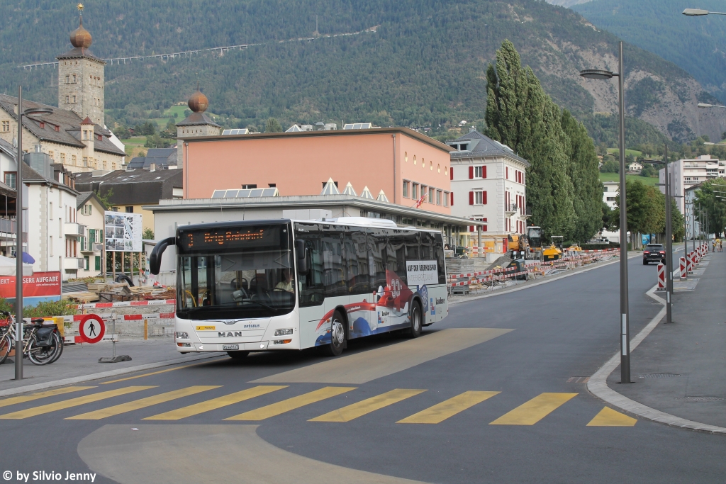 Postauto/Regie Brig VS 449 117 ''Lauber'' (MAN A21 Lion's City) am 3.9.2016 in Brig, Briggustutz. Der von Postauto betriebene Ortsbus in Brig ersetzte im Sommer 2016 seine Fahzeuge durch MAN A21 aus der neusten Beschaffungsperiode von Postauto. Auffäligstes Merkmal der neuen MAN sind die zusätzlichen Tagfahrlichter.