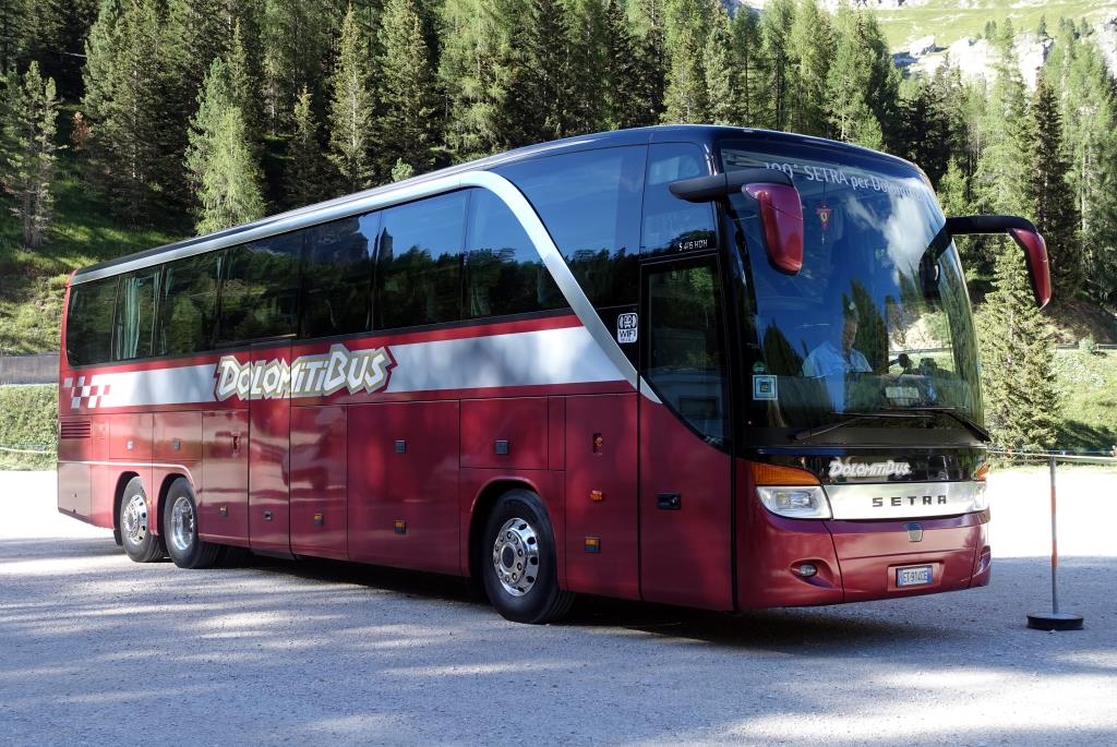 Setra S 416 HDH, der 100. Setra für "Dolomiti Bus", bei Cortina d'Ampezzo (Dolomiten) 05.09.2016