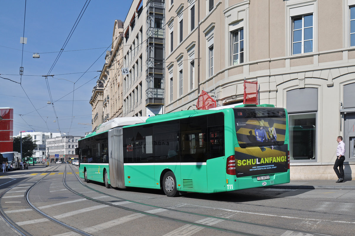 Mercedes Citaro 711, auf der Linie 48, verlässt die Haltestelle am Bahnhof SBB Richtung Schützenhaus. Die Aufnahme stammt vom 22.09.2016.