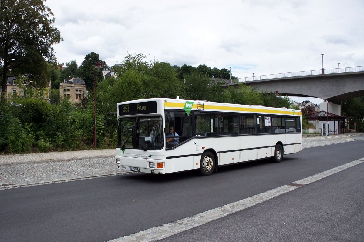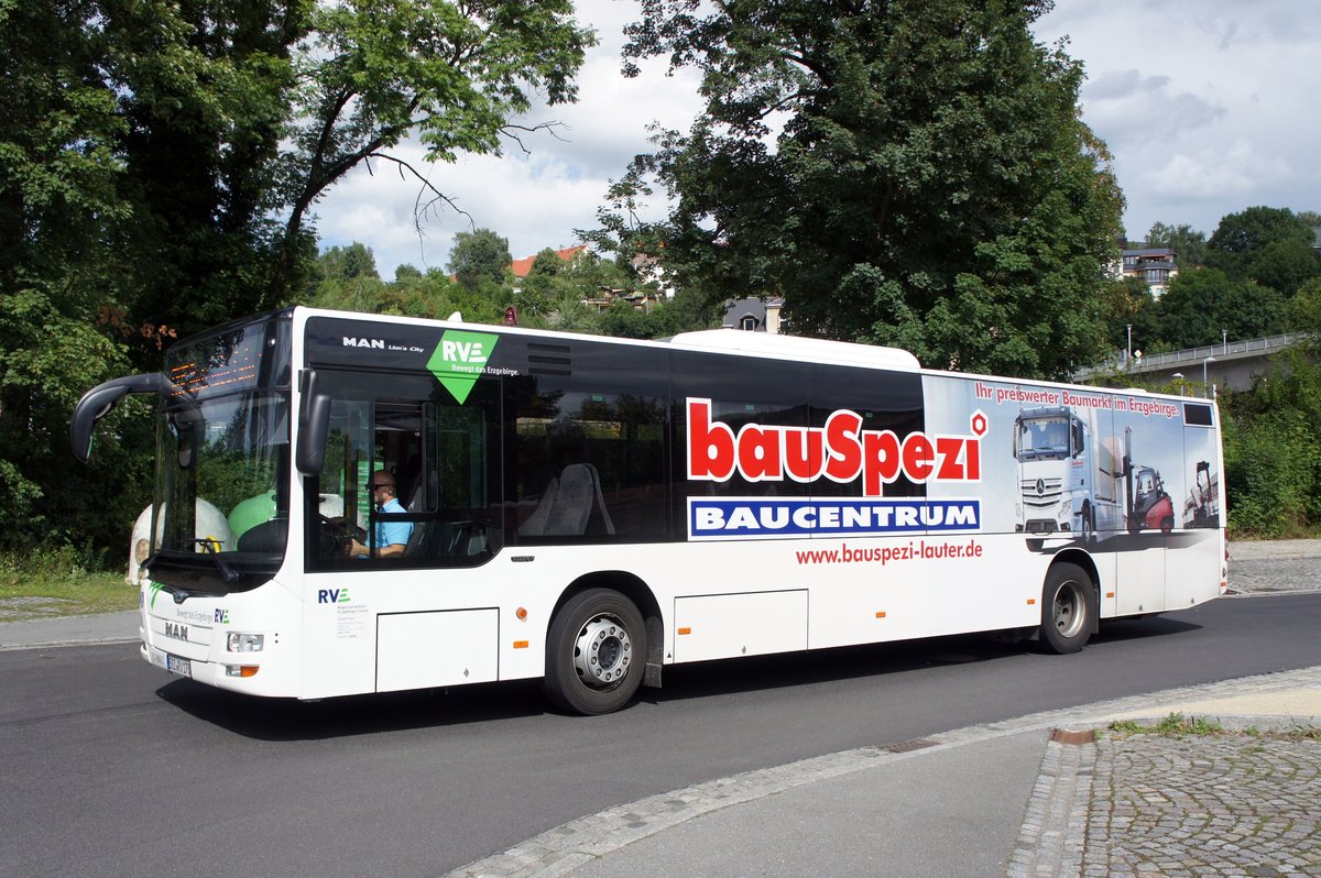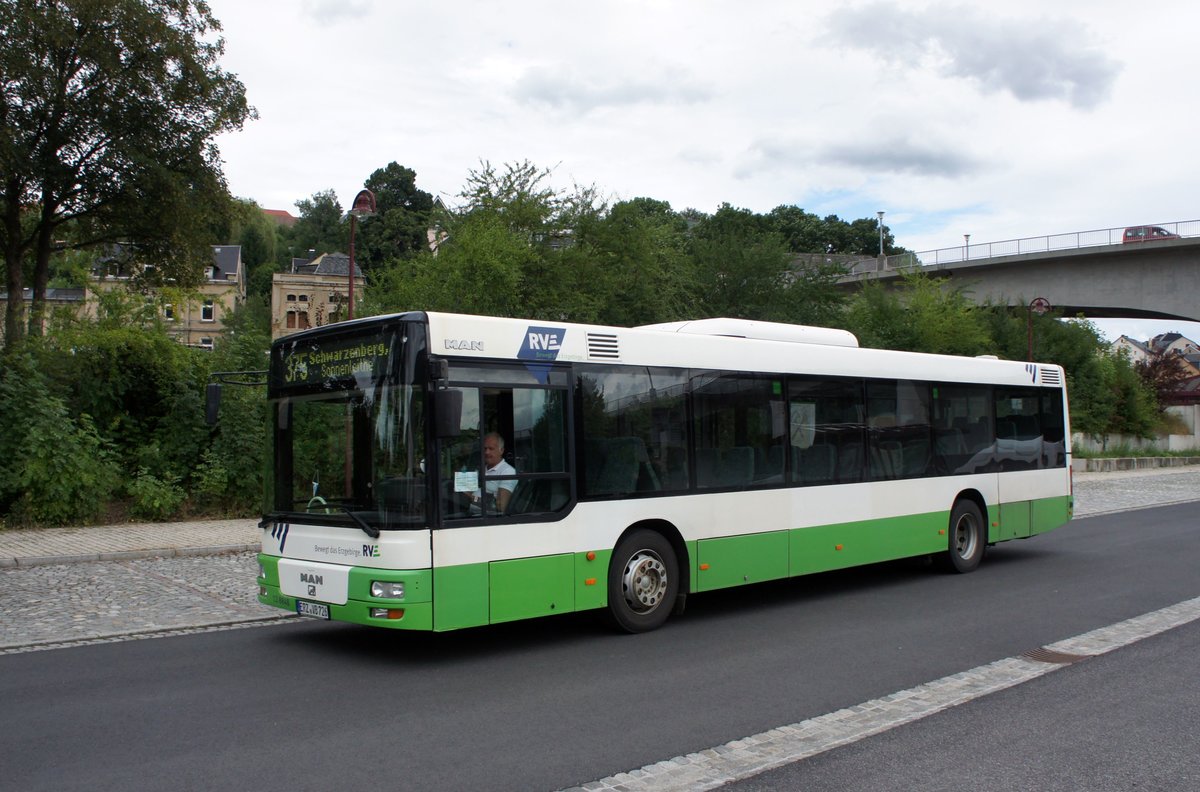 Bus Aue / Bus Erzgebirge: MAN NL der RVE (Regionalverkehr Erzgebirge GmbH), aufgenommen im August 2017 am Bahnhof von Aue (Sachsen).