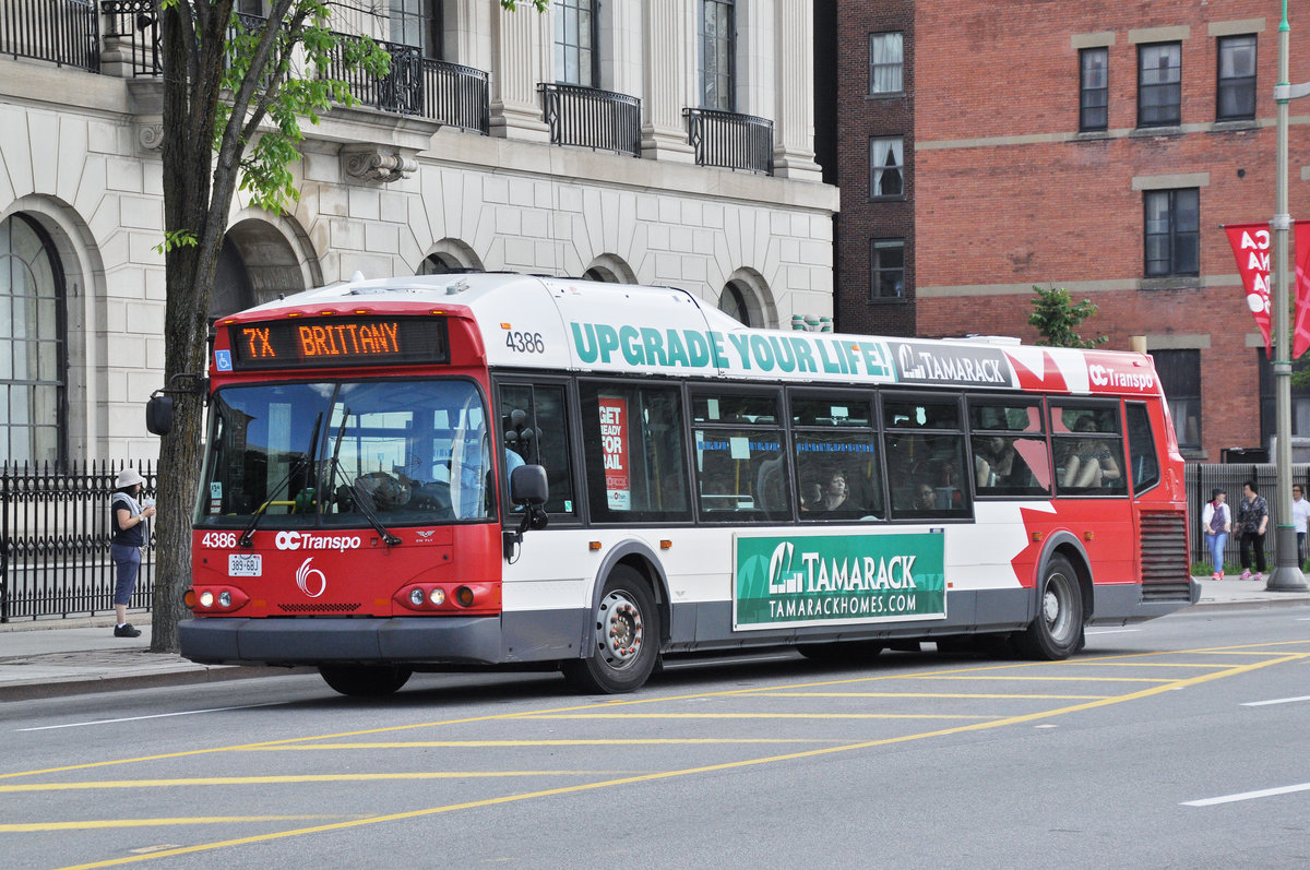 Invero D 40i Bus mit der Nummer 4386, auf der Linie 7X unterwegs in Ottawa. Die Aufnahme stammt vom 17.07.2017.