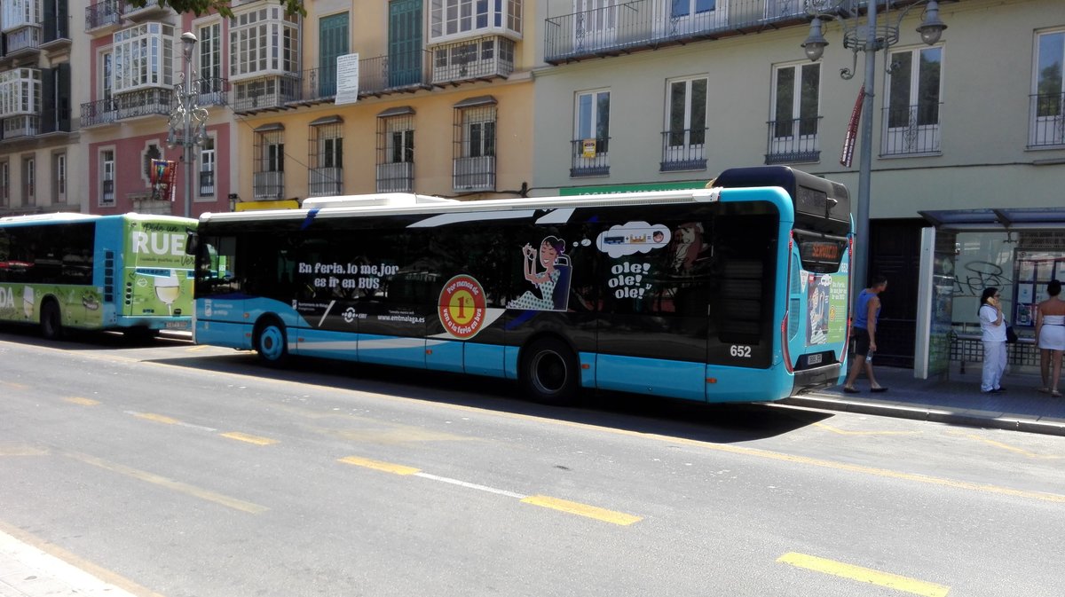 Iveco Urbanway 12, Wagen 652, EMT Malaga, an der Haltestelle Alameda Principal Sur in Malaga am 09. August 2017.