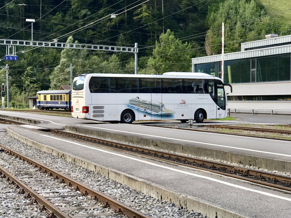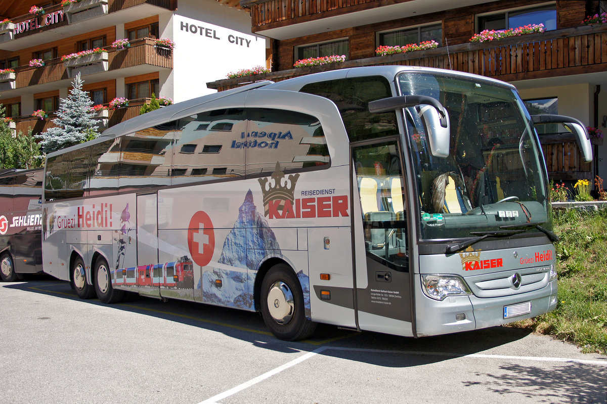 Folglich sind zig Fahrzeuge und Reisebusse in Zweilütschinen blockiert, wie hier ein MB Tourismo der vor dem Bhf Zweilütschinen steht.