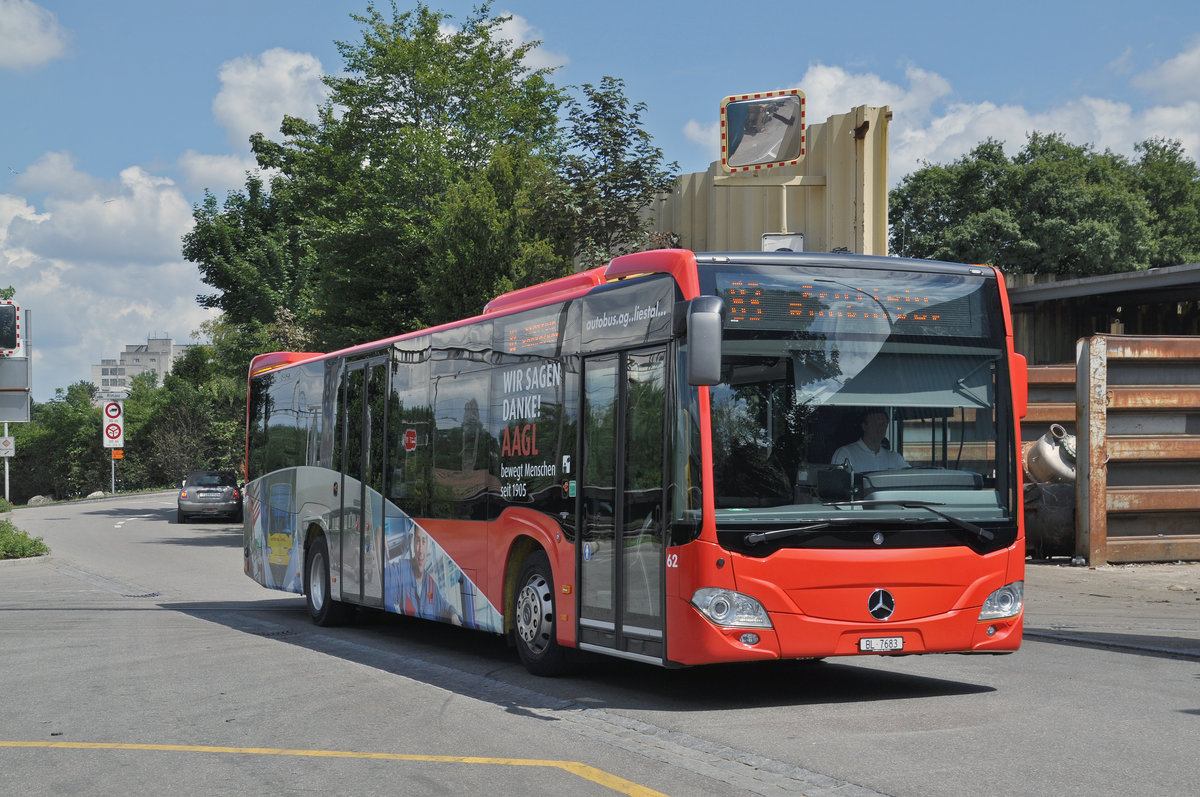 Mercedes Citaro 62 der AAGL, auf der Linie 83, fährt zur Haltestelle beim Bahnhof Kaiseraugst. Die Aufnahme stammt vom 13.07.2017.