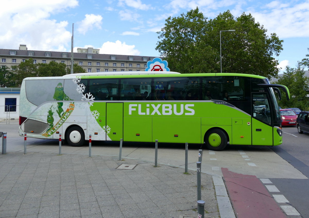 Setra S 516 HD von Flxbus / GradLiner, 'Flix auf die Piste', am ZOB -Berlin im August 2017.