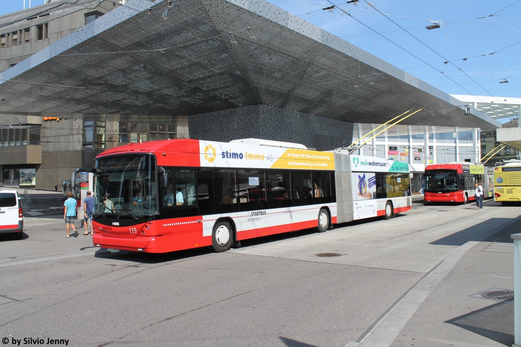 Stadtbus Winterthur Nr. 119 (Hess Swisstrolley 3 BGT-N1C) am 18.7.2017 beim Hauptbahnhof
