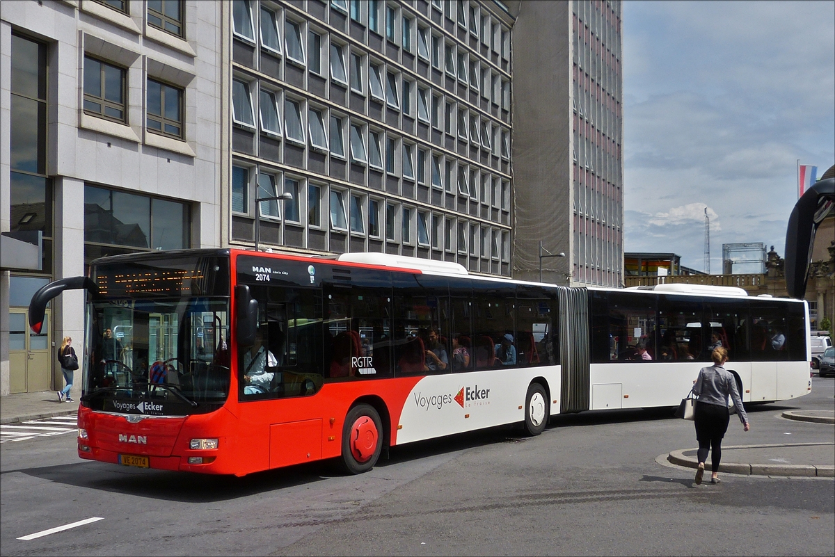 VE 2074, MAN Lion's City Gelenkbus, von Voyages Ecker, gesehen in der Stadt Luxemburg. 29.06.2017