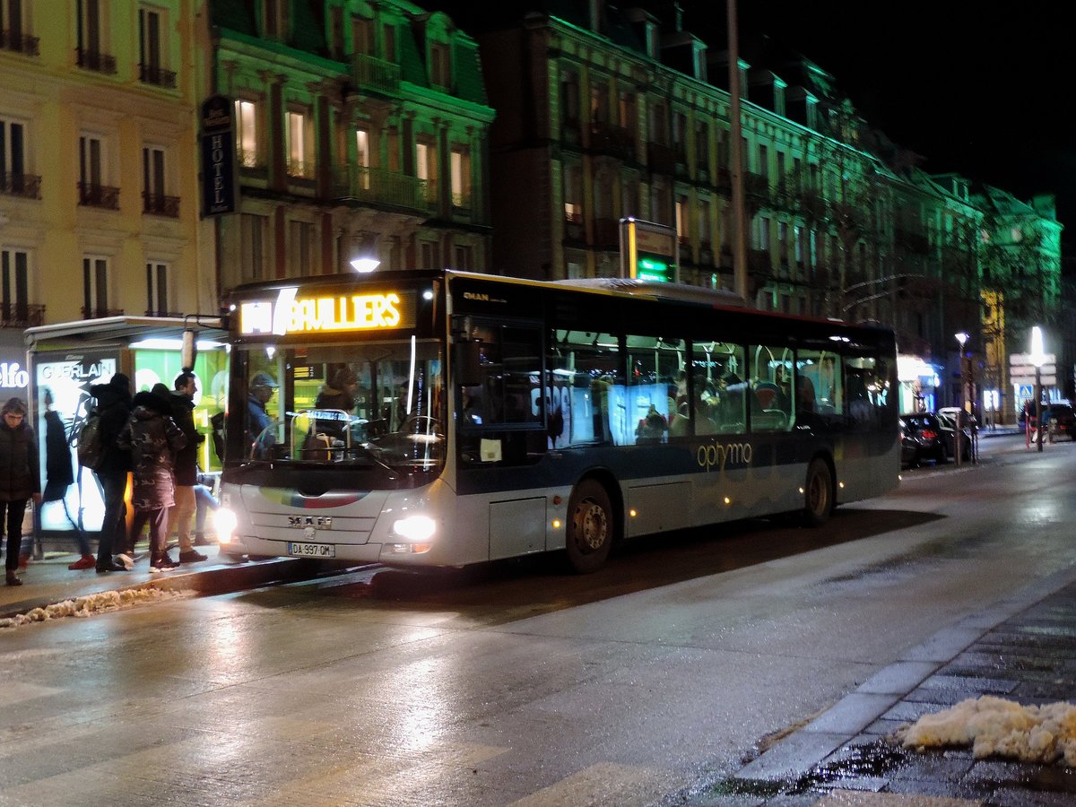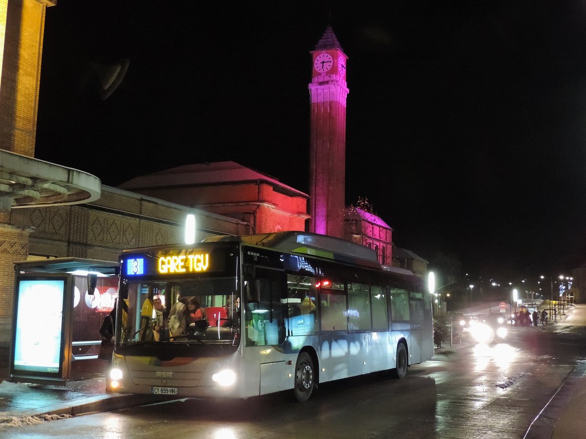 Belfort - 09.12.17 : LPG getriebene Lion's City Nr 43 auf der Linie 3 vor dem Bahnhof.