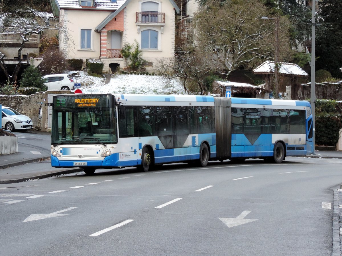 Montbéliard - 09.12.17 : Heuliez GX 327 Nr 1414 auf der Linie 2.