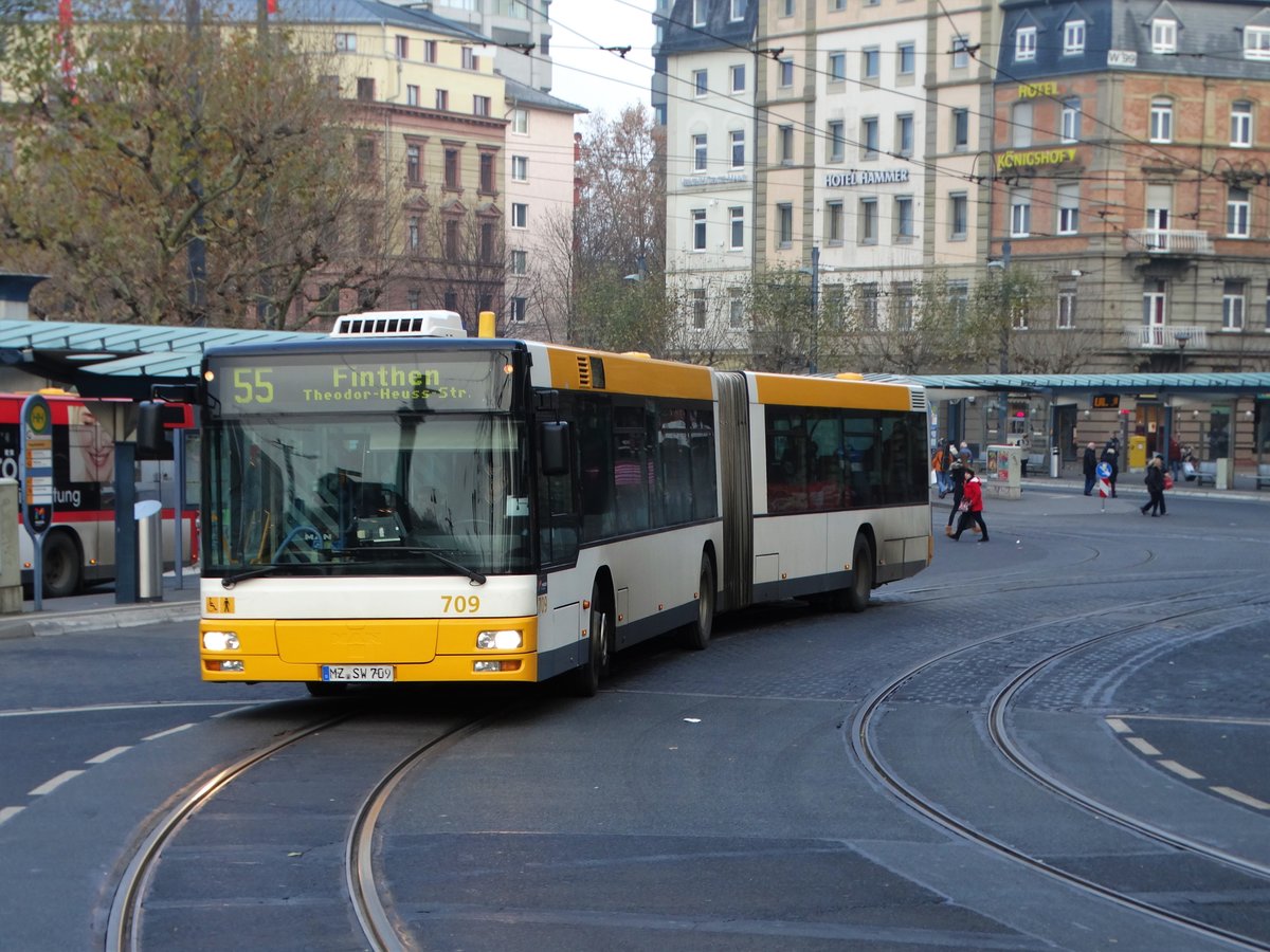 MVG MAN Gelenkzug der 2. Generation Wagen 709 am 02.12.17 in Mainz Hauptbahnhof