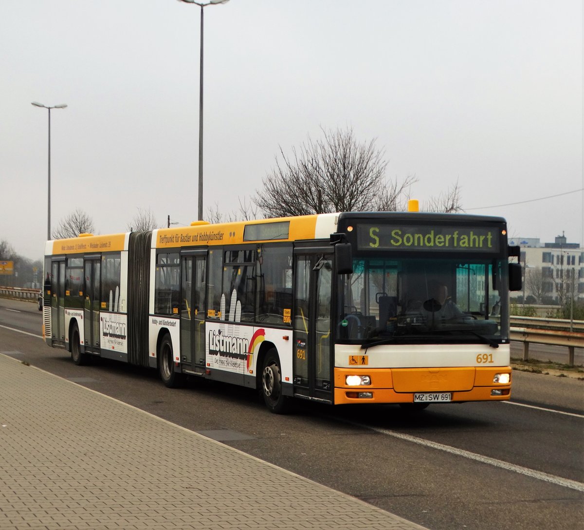 MVG MAN Gelenkzug der 2. Generation Wagen 691 am 02.12.17 in Mainz Stadionverkehr