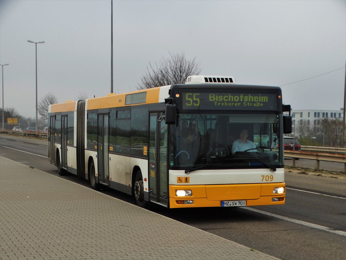 MVG MAN Gelenkzug der 2. Generation Wagen 709 am 02.12.17 in Mainz Stadionverkehr