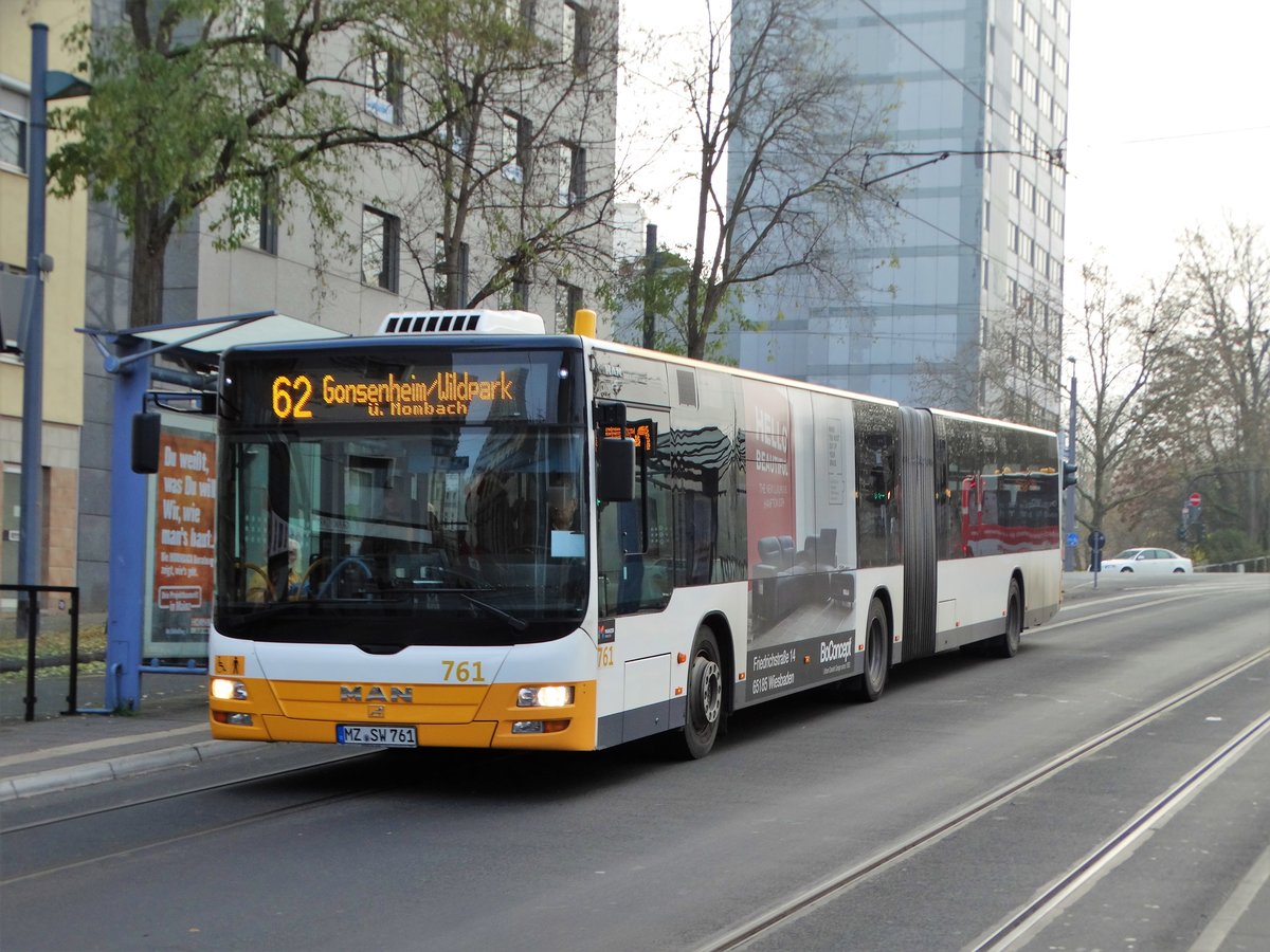 MVG MAN Lions City G Wagen 761 am 02.12.17 in Mainz Hauptbahnhof