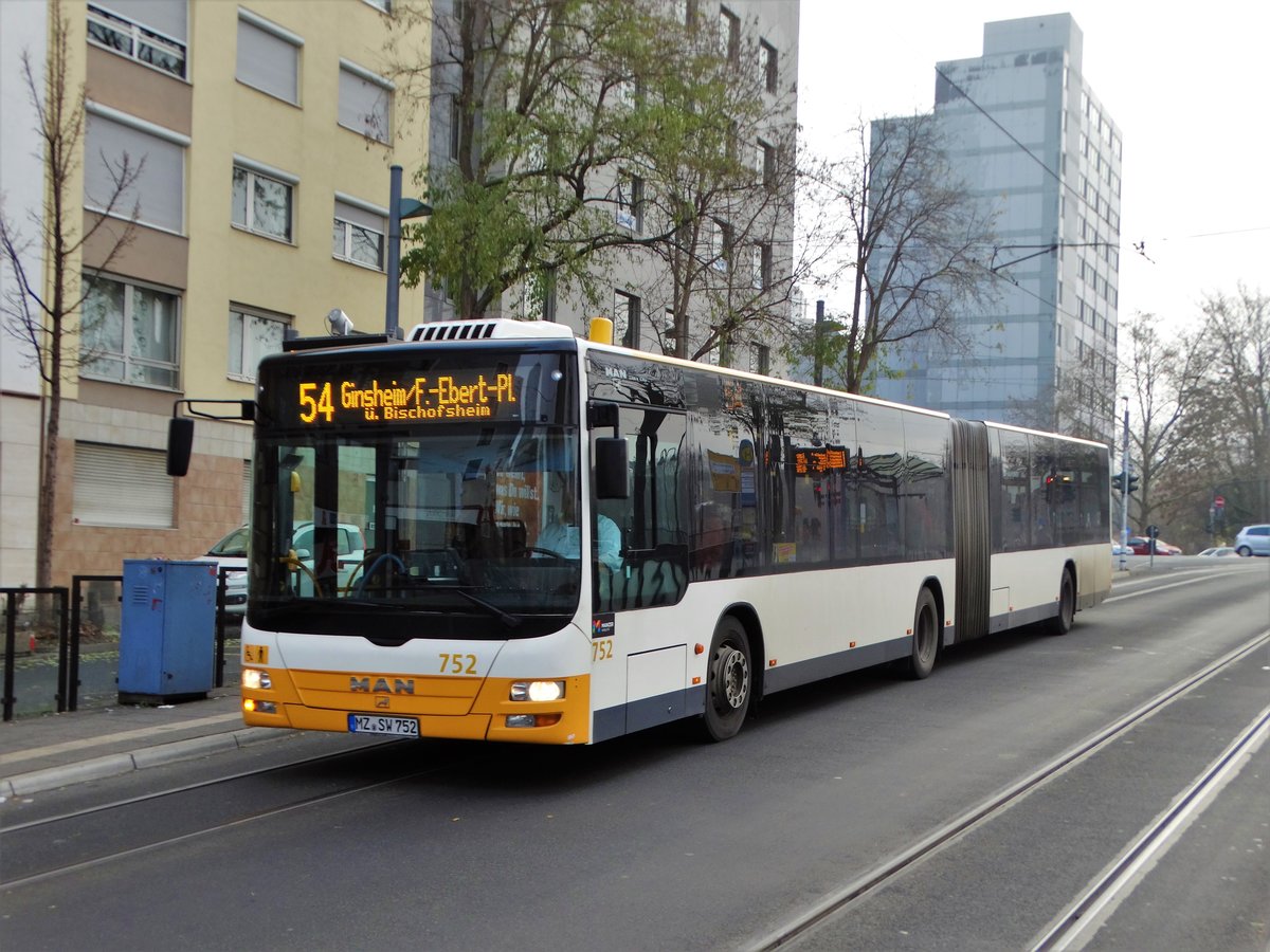 MVG MAN Lions City G Wagen 752 am 02.12.17 in Mainz Hauptbahnhof