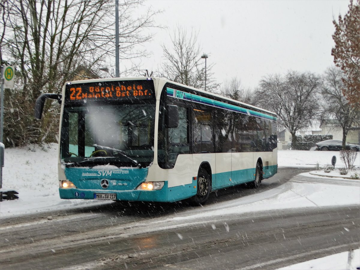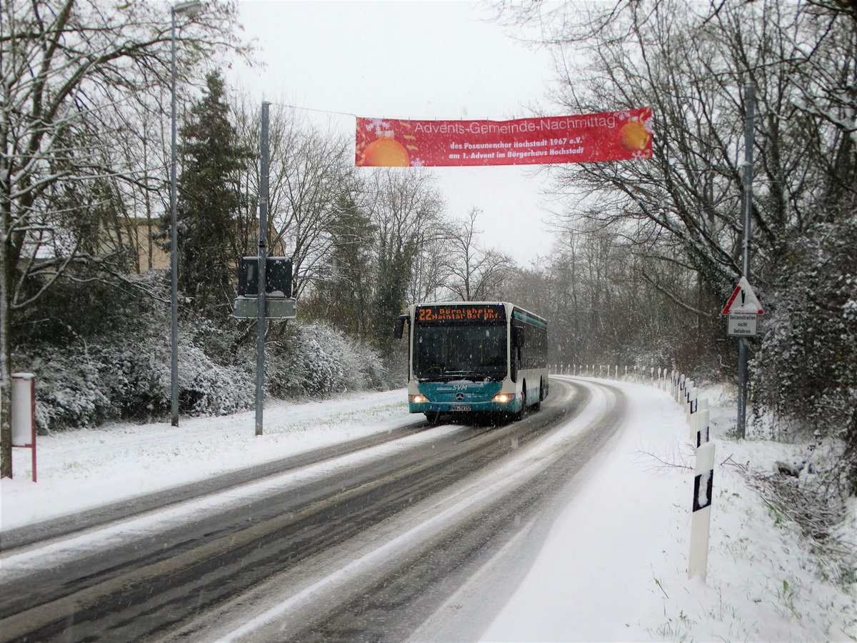 Stadtverkehr Maintal Mercedes Benz Citaro 1 Facelift am 10.12.17 im Schnee in Hochstadt