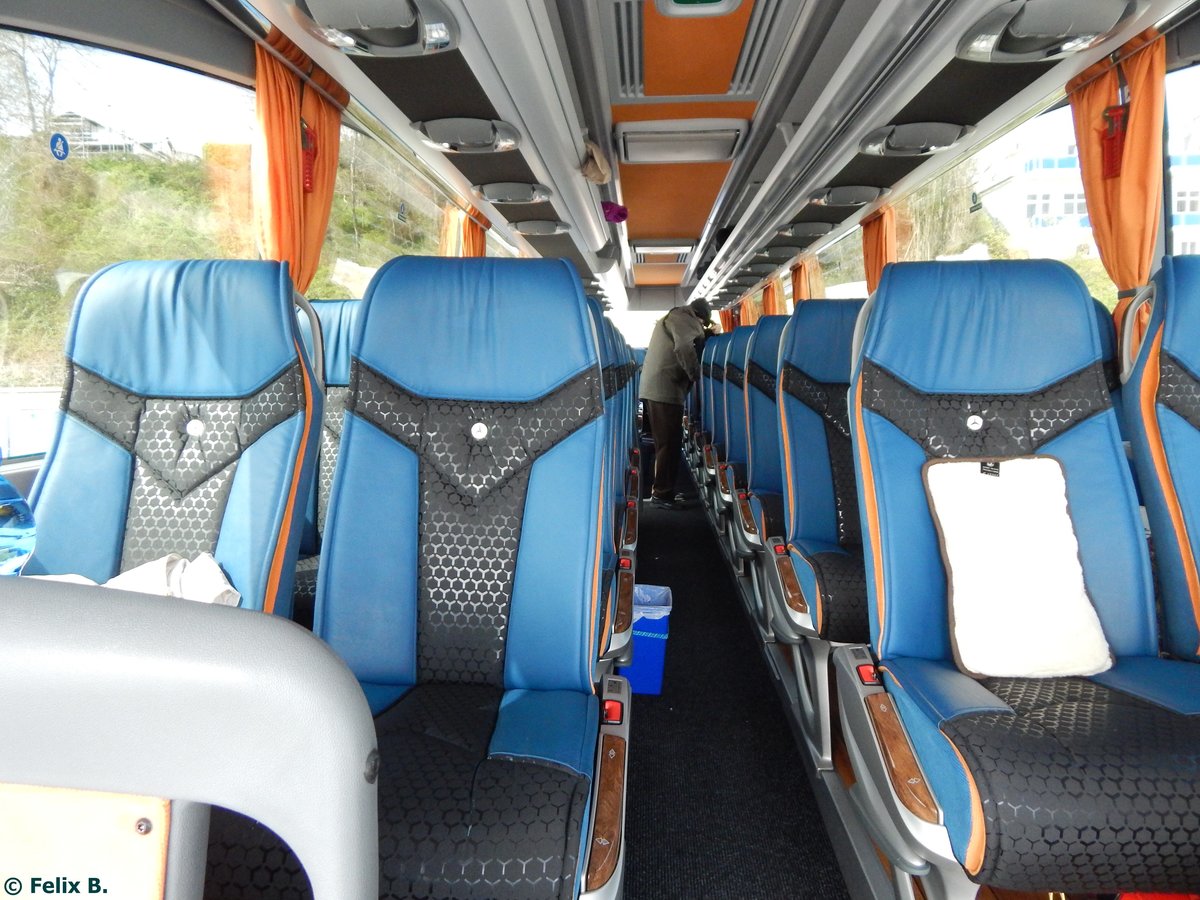 Der Fahrgastraum eines Mercedes Travego von Bohr aus Deutschland im Stadthafen Sassnitz am 24.04.2015