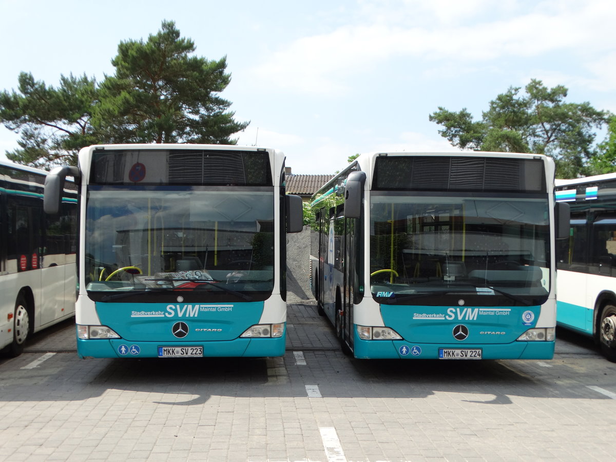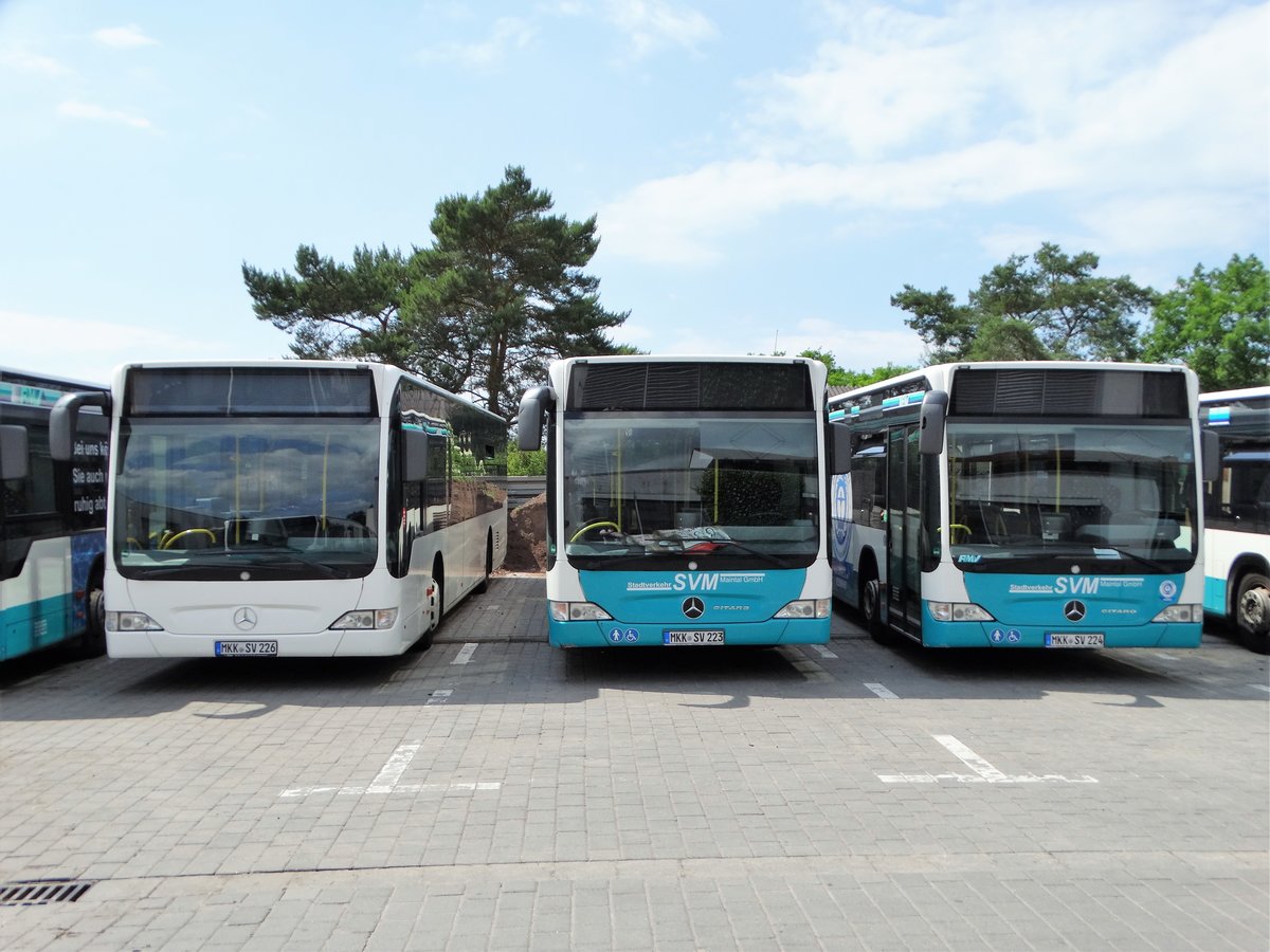 Zwei Stadtverkehr Maintal Mercedes Benz Citaro 1 Facelift am 04.06.17 auf den Betriebshof der Stadt Maintal im Rahmen des Tag der Offenen Tür der Feuerwehr
