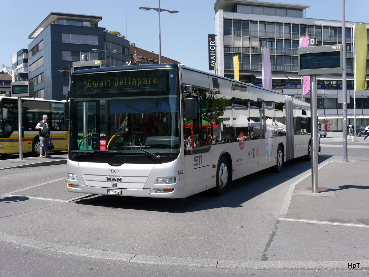 STI - MAN Lion`s City Nr.120 BE 700120 bei den Bushaltestellen vor dem Bahnhof in Thun am 27.05.2017